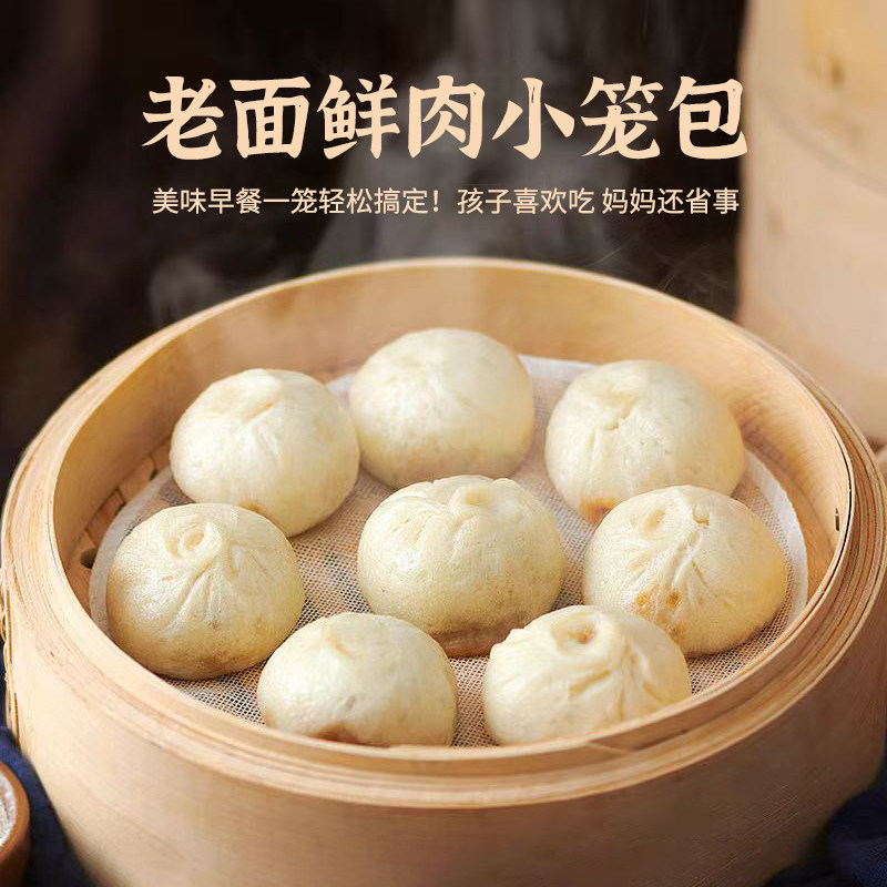 苏州风味鲜肉小笼包速食黑猪肉早餐半成品加热即食老面手工肉包子
