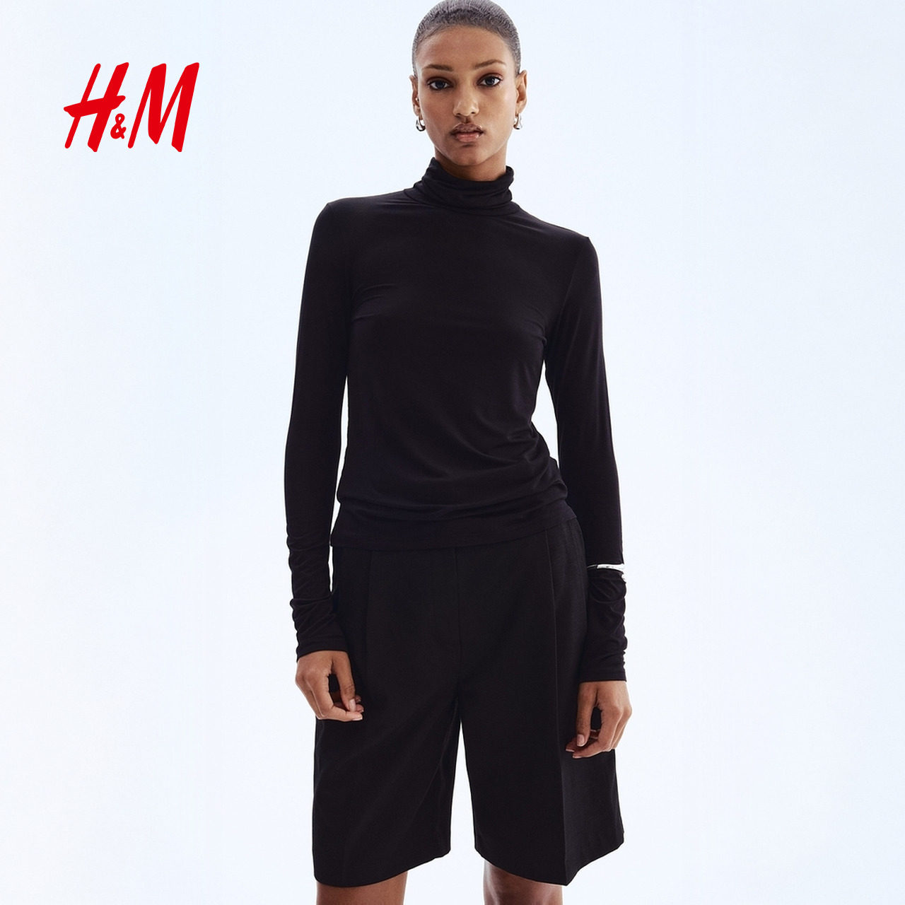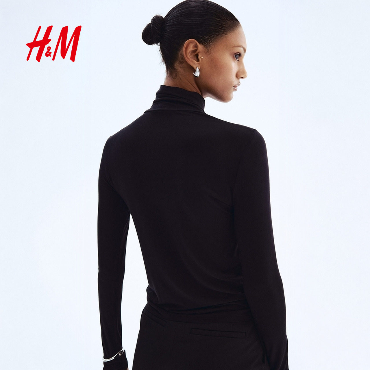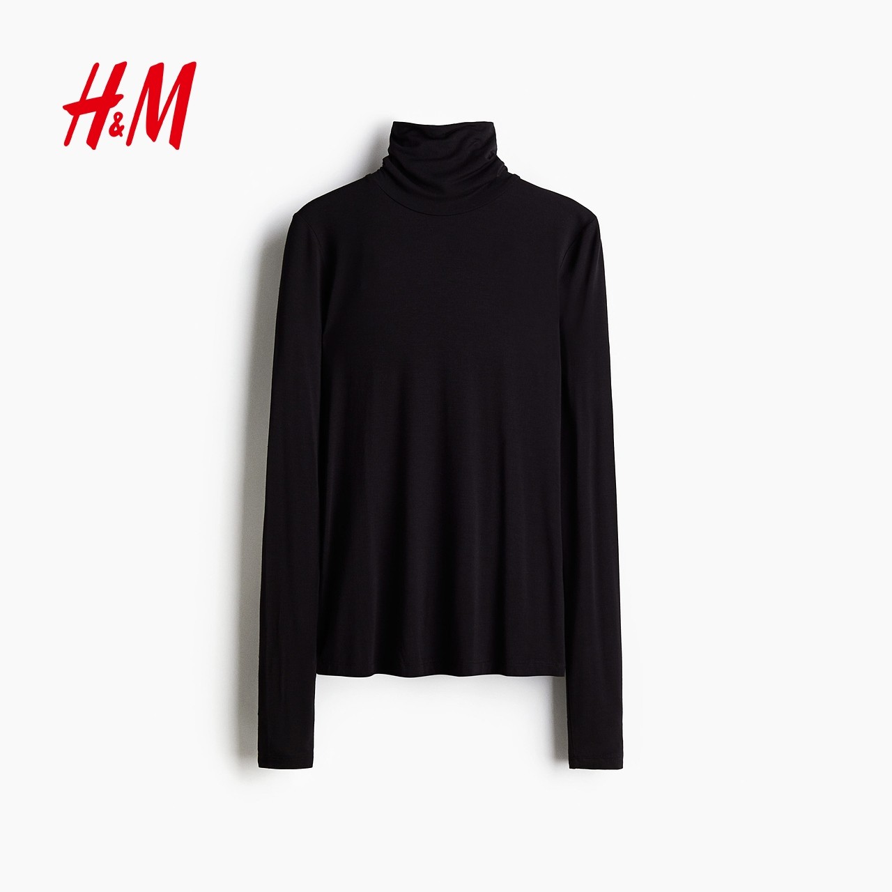 HM女装T恤2025年冬季新款女装粘纤圆高领上衣1306443