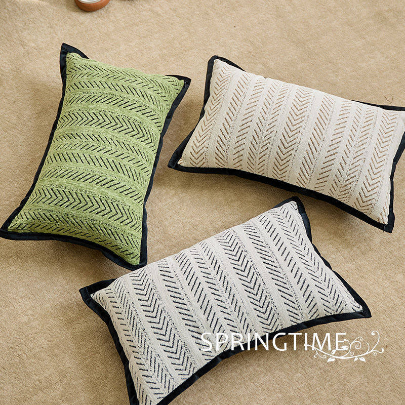 奶油风腰枕长方形沙发靠垫卧室床头客厅雪尼尔绿色沙发抱枕靠枕套