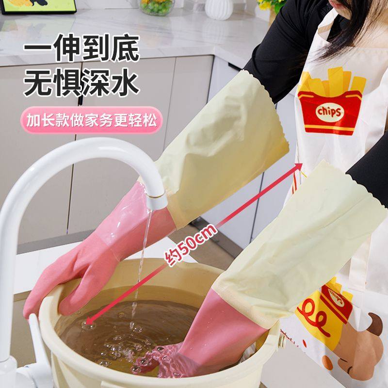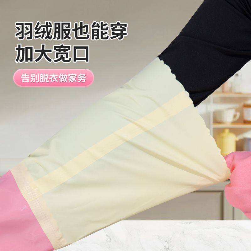 洗碗手套女超长厨房家务清洁耐磨防水防油污橡胶乳胶加厚加绒保暖