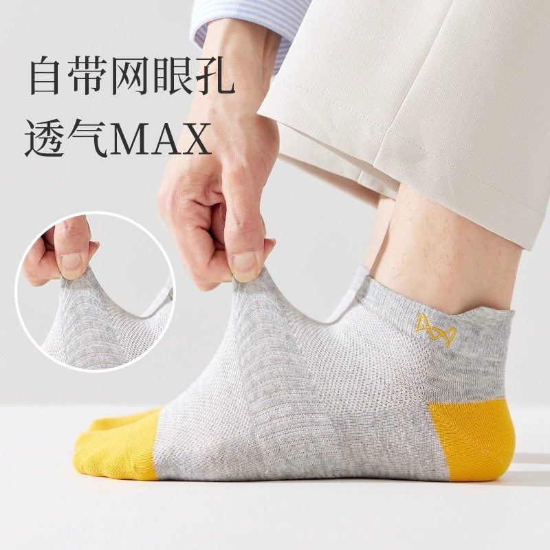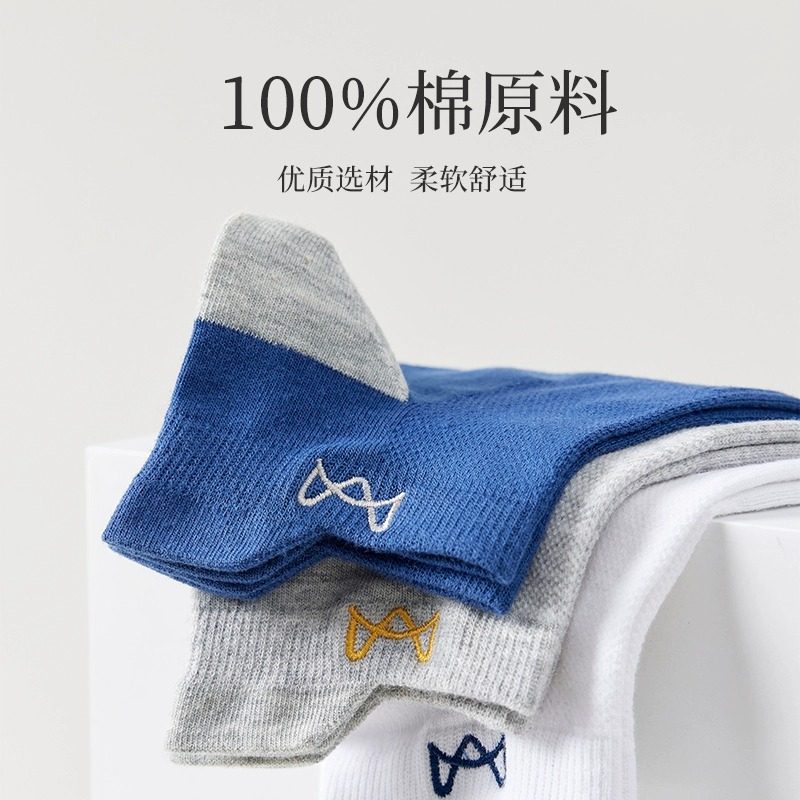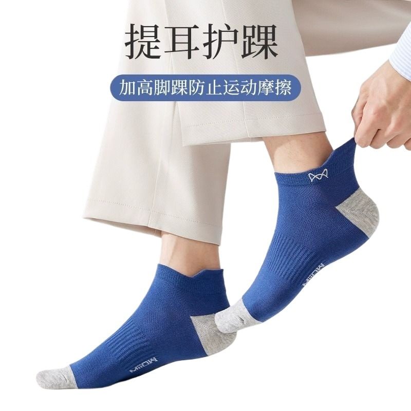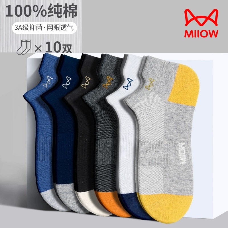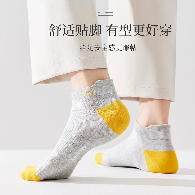 猫人袜子男士短袜纯棉抗菌防臭夏季薄款全棉男生运动船袜后跟短筒