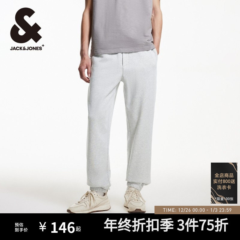 杰克琼斯男装纯色薄款合体束脚裤休闲裤卫裤长裤男裤子2025年秋