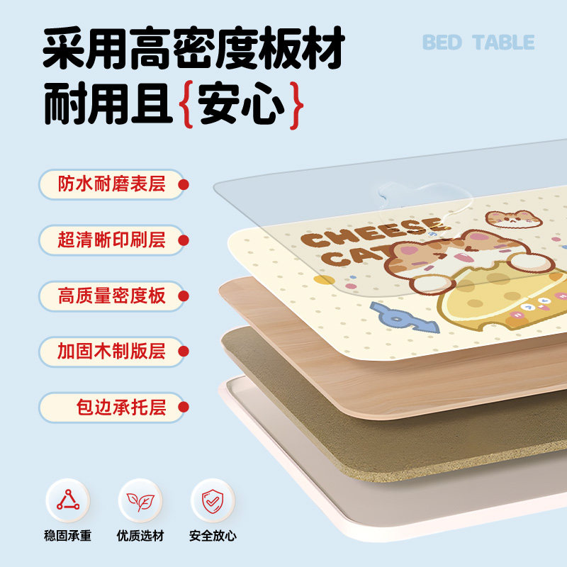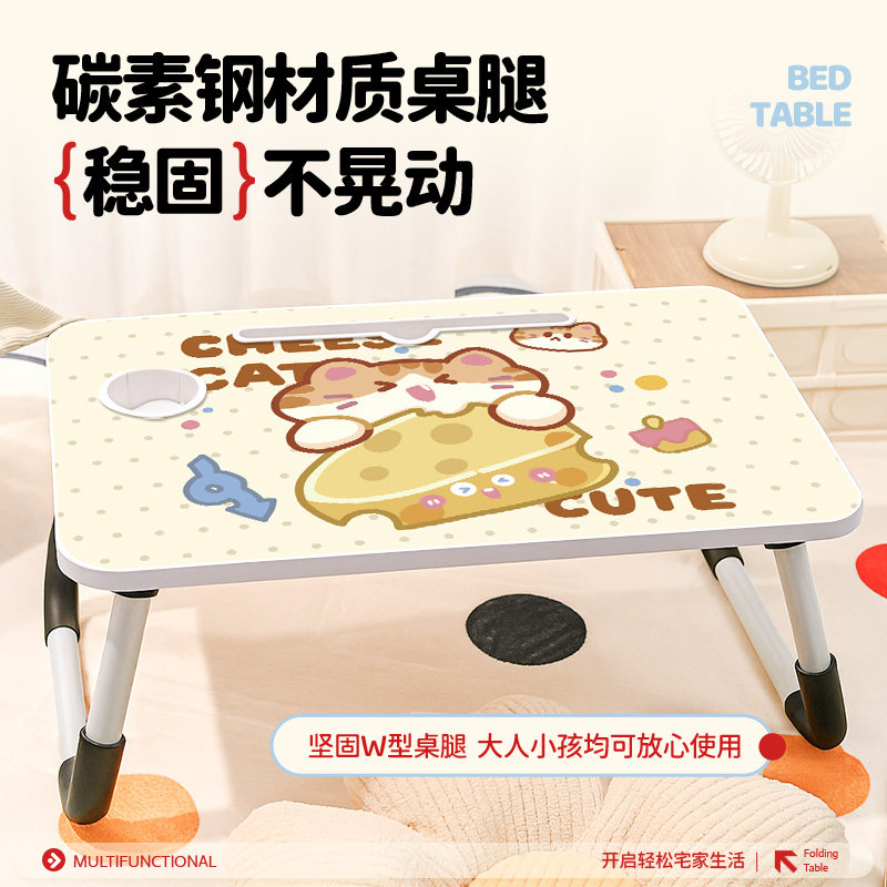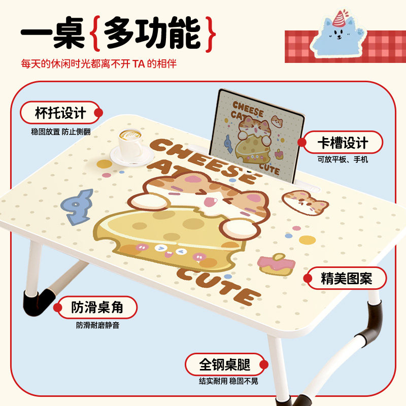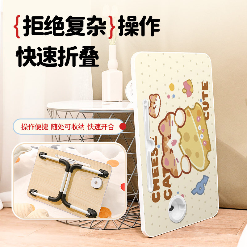 芝士猫猫床上小桌子多功能可折叠学生宿舍床上书桌餐桌笔记本电脑桌少女心图案儿童家用卧室飘窗可移动小桌