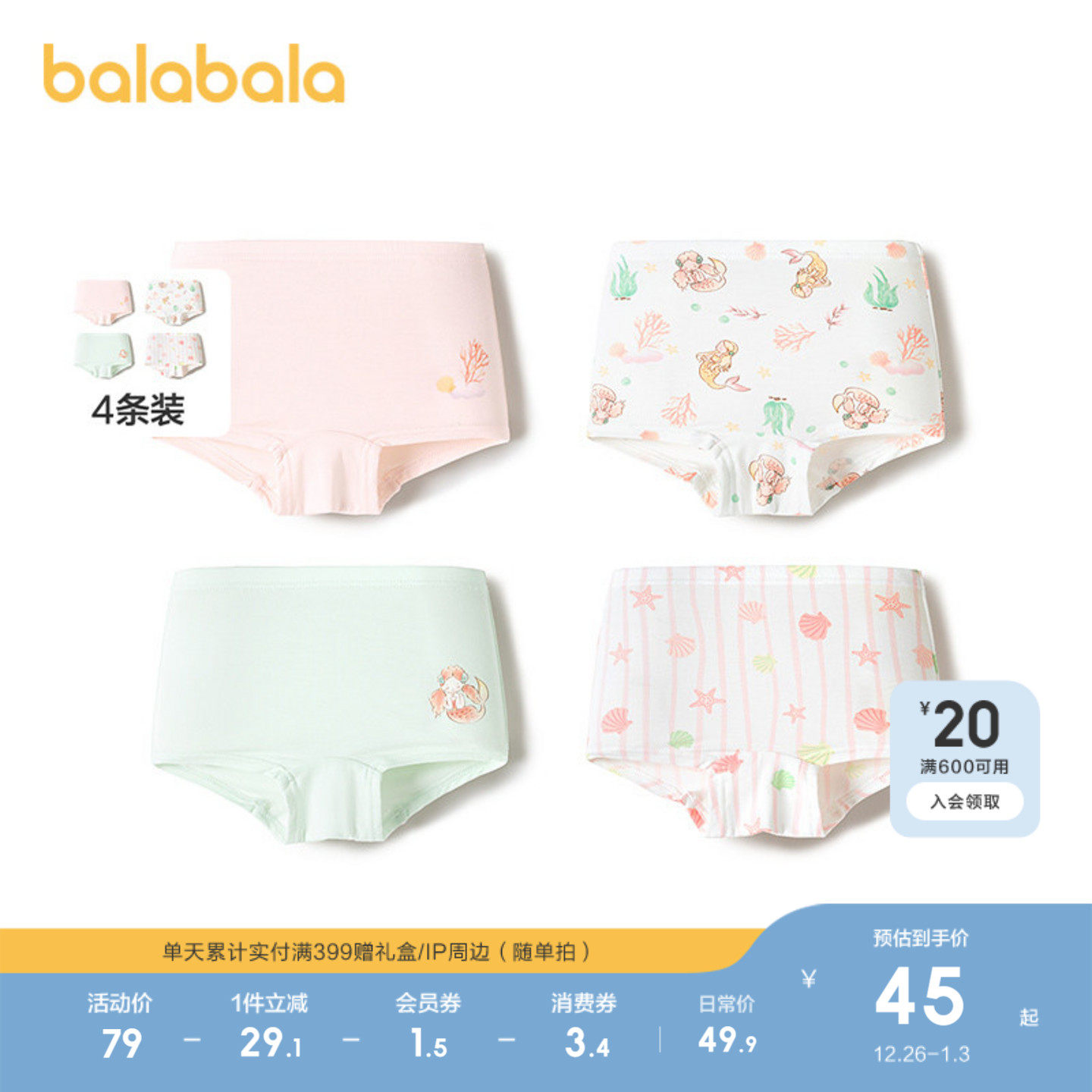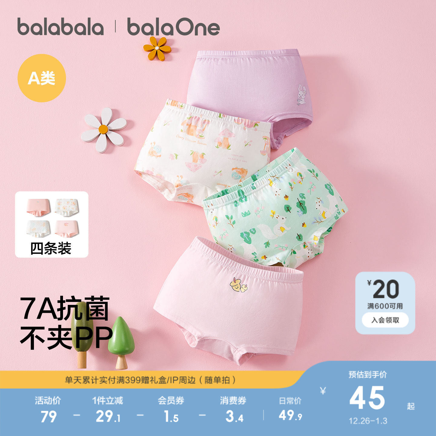 巴拉巴拉儿童内裤棉平角四角短裤女童防走光宝宝莫代尔柔软四条装