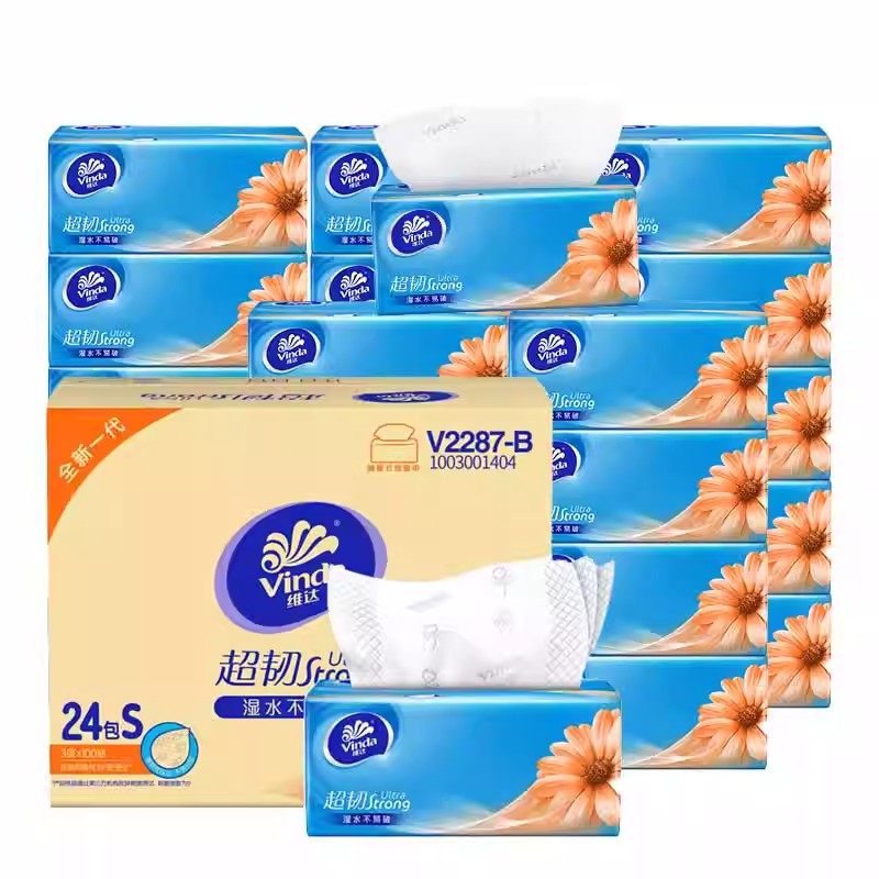 维达大包抽纸100抽加厚3层家用面巾纸整箱湿水不易破实惠装卫生纸
