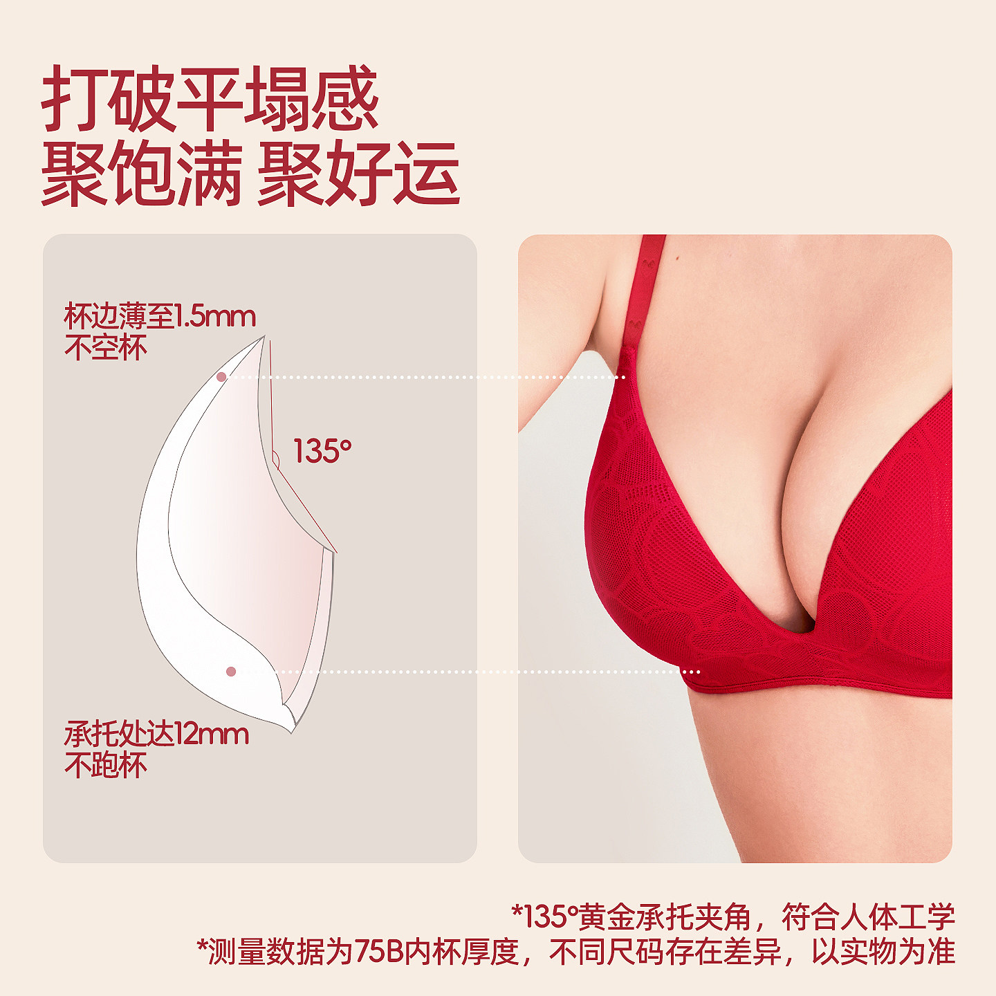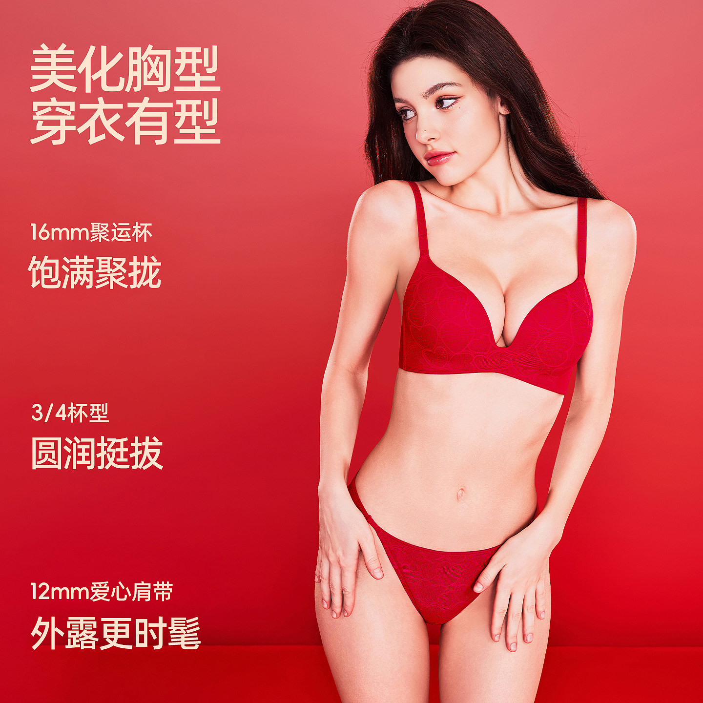 【宋轶同款 玫瑰舒挺杯】安莉芳小胸显大内衣本命年红无钢圈文胸