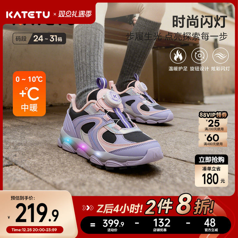 卡特兔童鞋儿童运动鞋2025冬季新品闪灯鞋防滑耐磨加绒棉鞋跑步鞋
