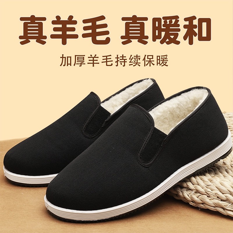 冬季老北京布鞋男中老年加绒加厚保暖老人一脚蹬工作防寒羊毛棉鞋