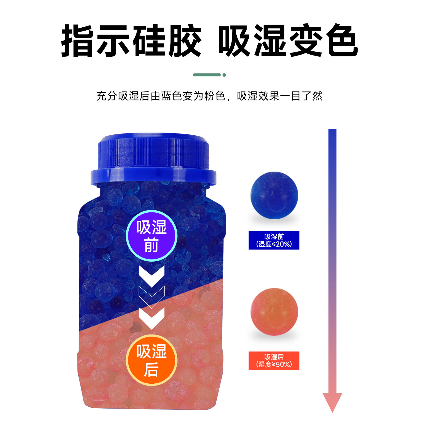 启庞干燥剂500克g橙色蓝色变色硅胶防潮珠吸钢3D打印机pla耗材干燥箱干燥剂乐器吉他手表钢琴耳蜗瓶装防潮珠