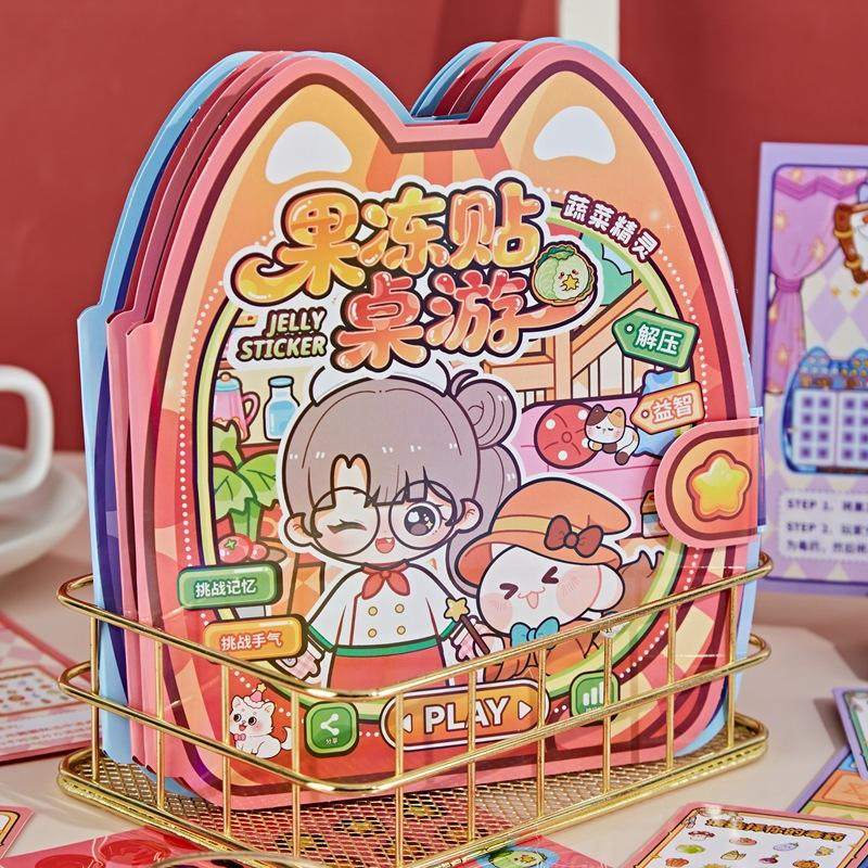 萌崽新款学霸学渣果冻贴纸安静书儿童免裁剪手工粘贴DIY女孩趣味玩具