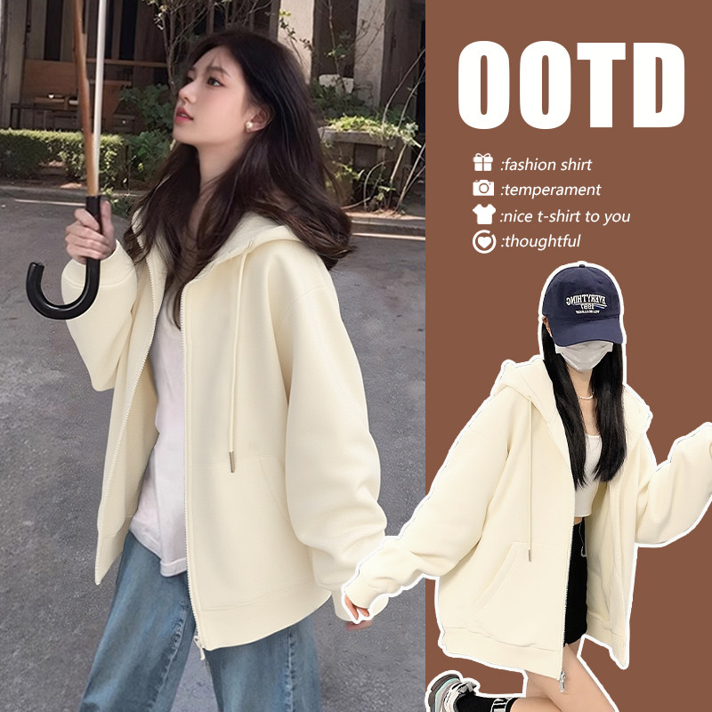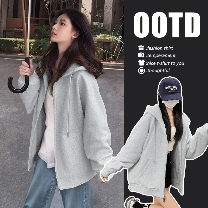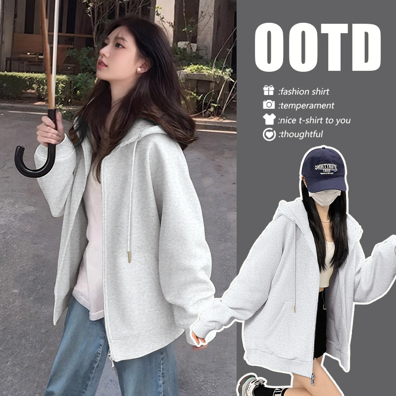 NOW真维斯黑色连帽卫衣女2026新款早秋美式大码高级感开衫外套女