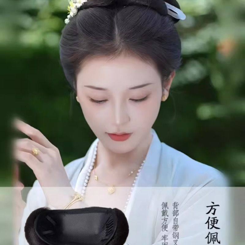 古风汉服假发髻盘发一体式发包古装明制唐风懒人造型垫发全套头饰
