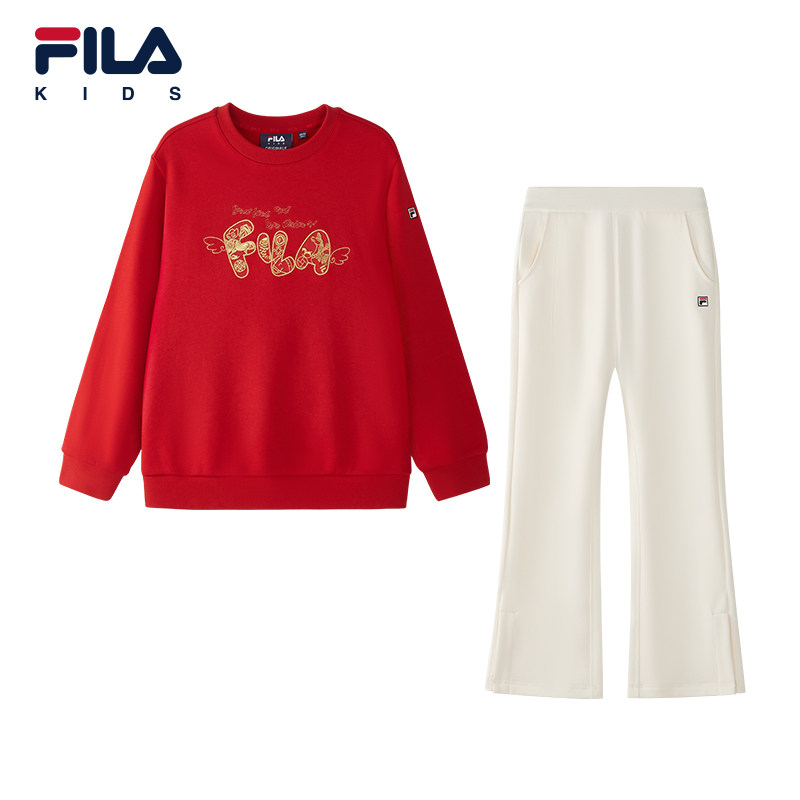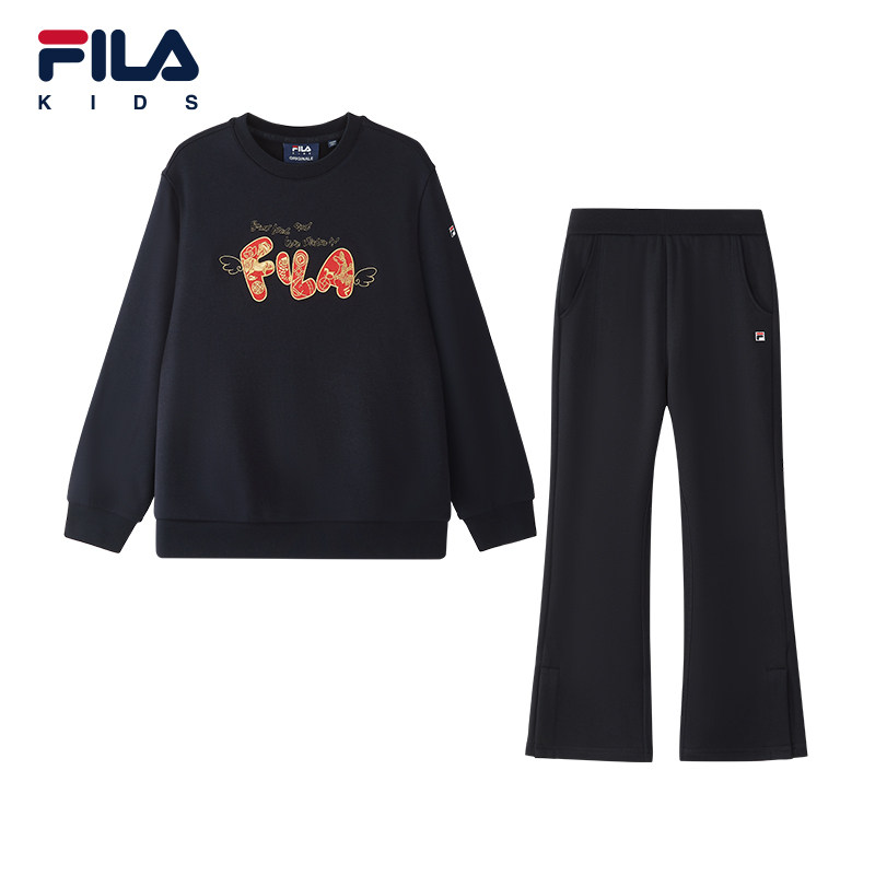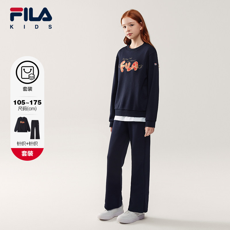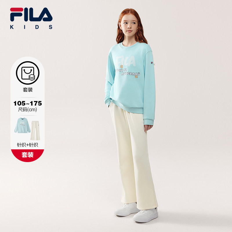 FILA KIDS斐乐童装儿童套装针织卫衣卫裤春季新款女童休闲两件套