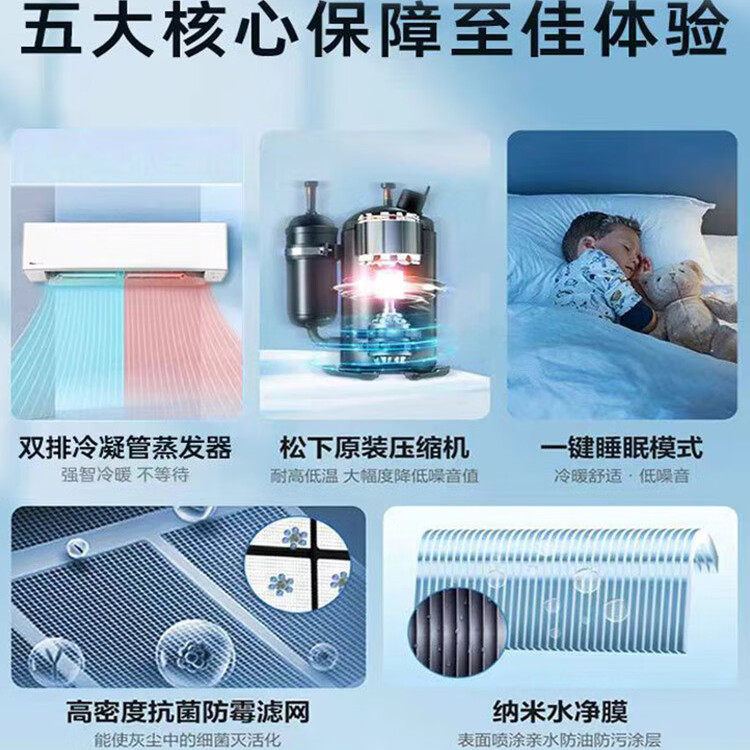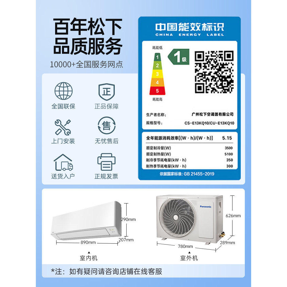 松下变频冷暖壁挂式空调原装压缩机节能独立除湿双排铜管E13KQ10