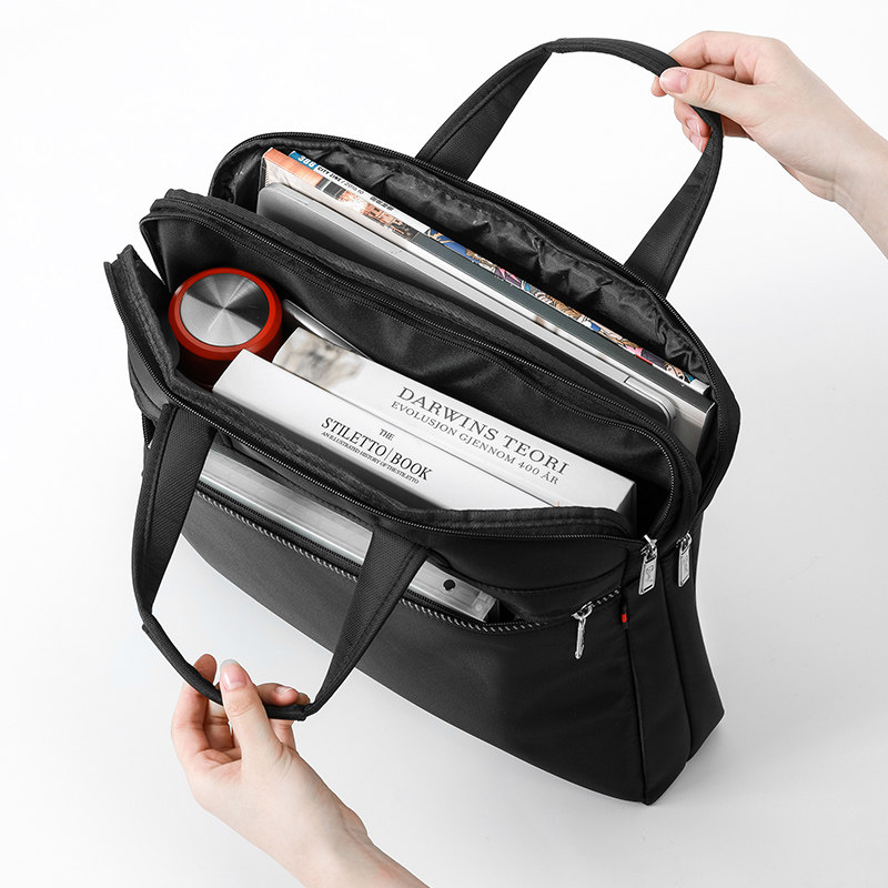杰利55141 三层拉链文件包a4定制商务高档男包手提包帆布单肩包斜