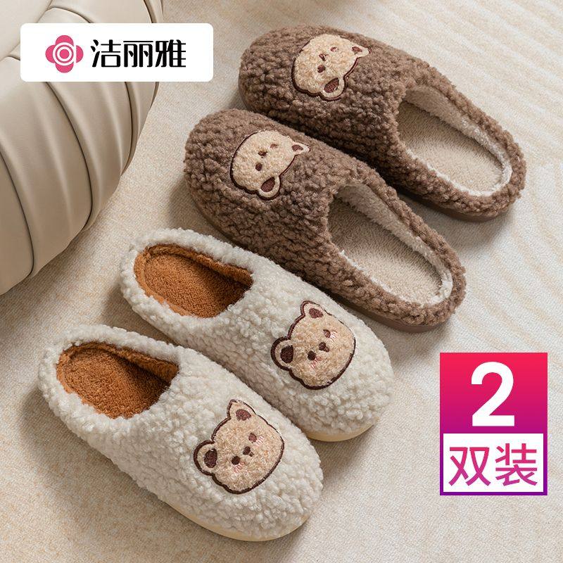 洁丽雅2棉拖鞋女冬季室内居家学生加绒保暖家用拖鞋男款防滑防臭
