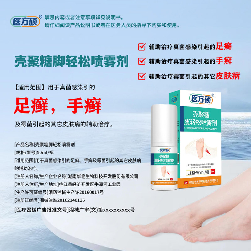 医方硕壳聚糖脚轻松喷雾剂脚气脚臭脚脱皮真菌感染足癣手癣霉菌qw