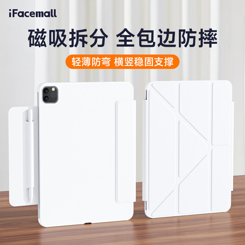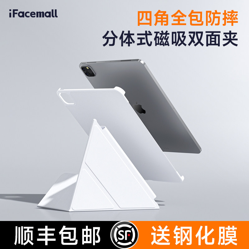 iFacemall新款ipad11保护套适用苹果air7平板壳pro13寸轻薄mini6磁吸10代可拆分5双面夹9带搭扣全包4防摔a16