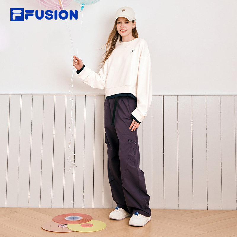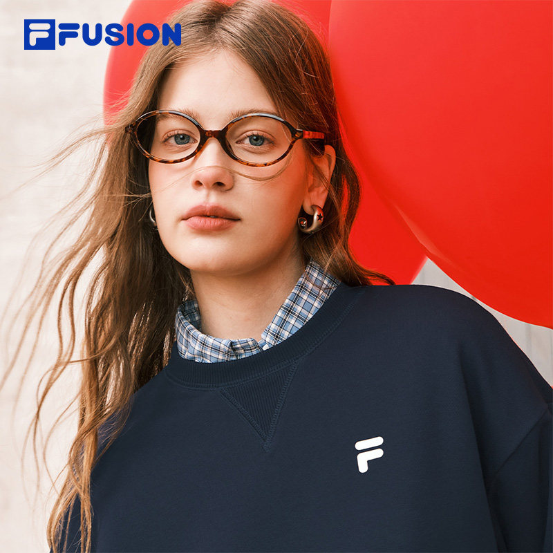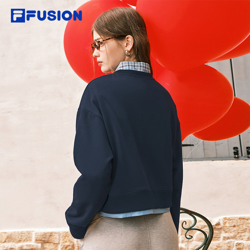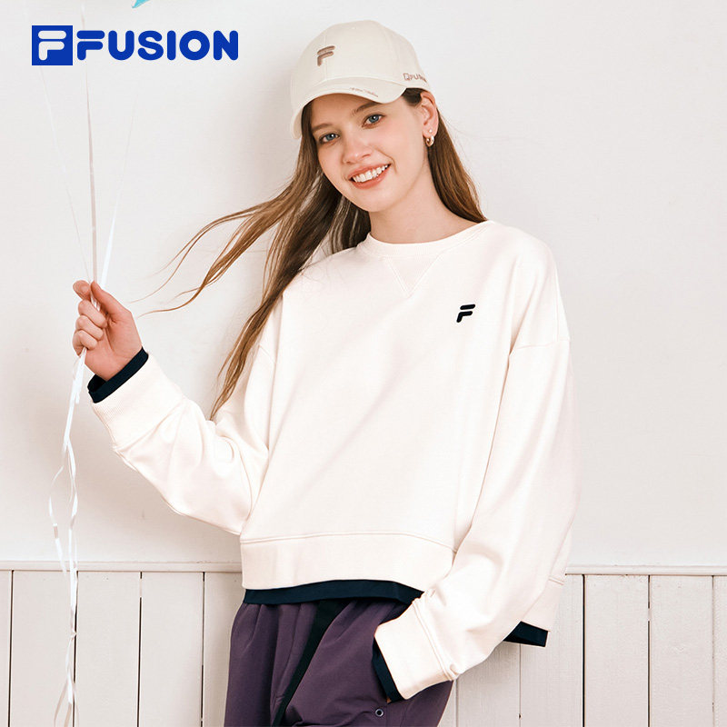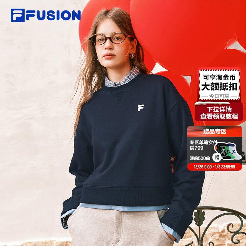 FILA FUSION斐乐潮牌圆领运动卫衣女2026春季新款假两件短款上衣