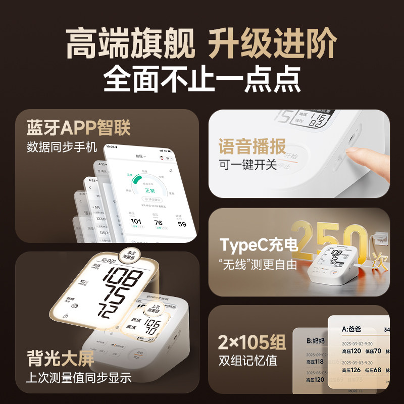 鱼跃血压家用测量仪高精准医用电子血压计老人全自动可充电血压仪