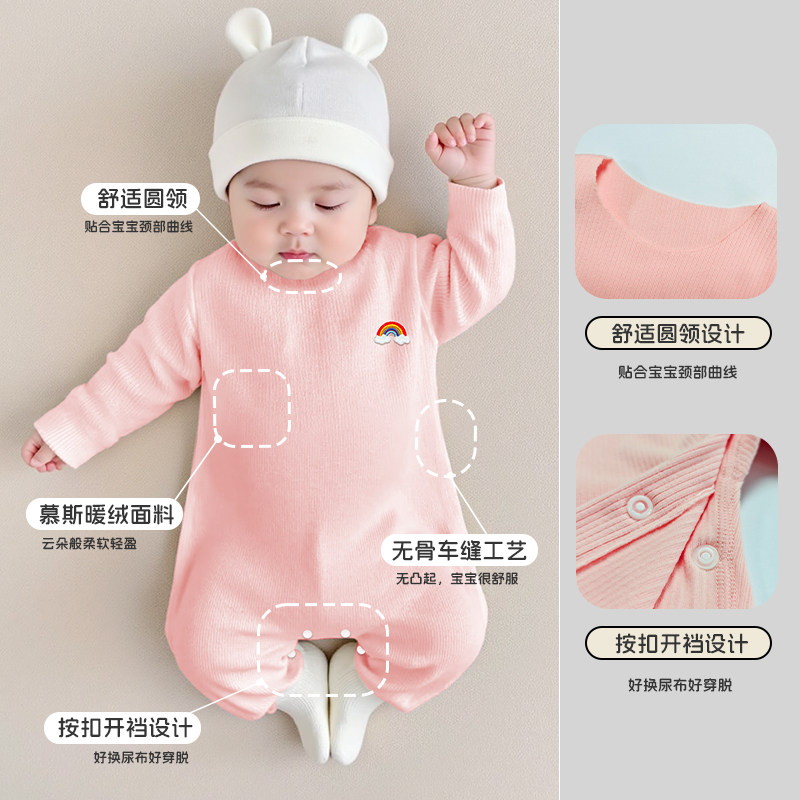 babycare冬季保暖山茶花连体衣宝宝包屁衣新生儿爬服外出婴儿衣服