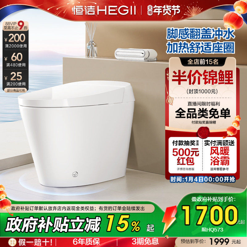 恒洁轻半智能马桶加热座圈马桶离座自动冲坐便器小户型家用HQ573