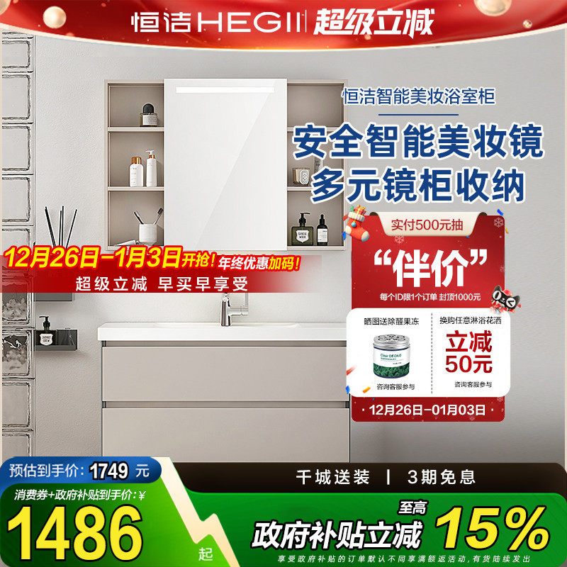 【政府补贴】恒洁浴室柜陶瓷一体盆多层实木洗脸盆柜组合BC6222