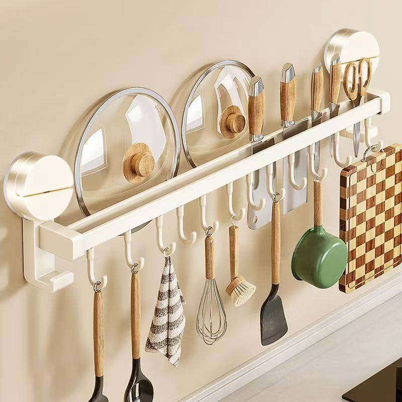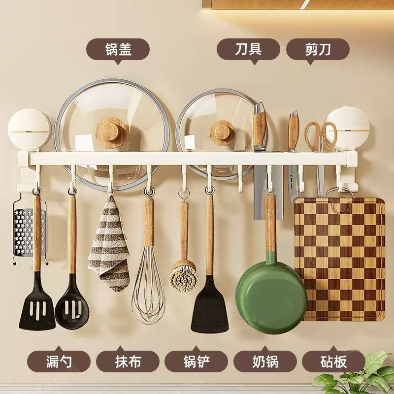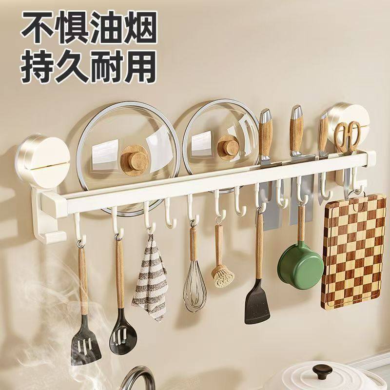 吸盘厨房挂钩免打孔挂杆锅勺子铲子挂架多功能壁挂置物架门后收纳