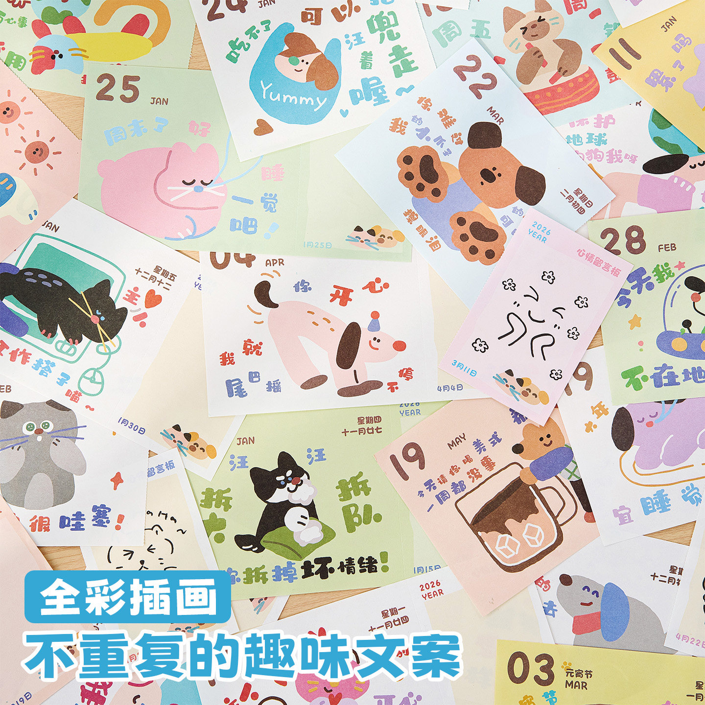 三年二班 2026宠物好友吸引日历高颜值ins风简约办公室桌面摆件打卡计划本倒计时日程备忘录月历新款创意台历