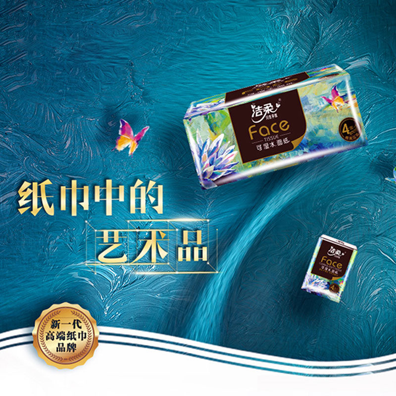 洁柔油画系列4层80抽加厚可湿水纸巾家用实惠装餐巾纸高端艺术