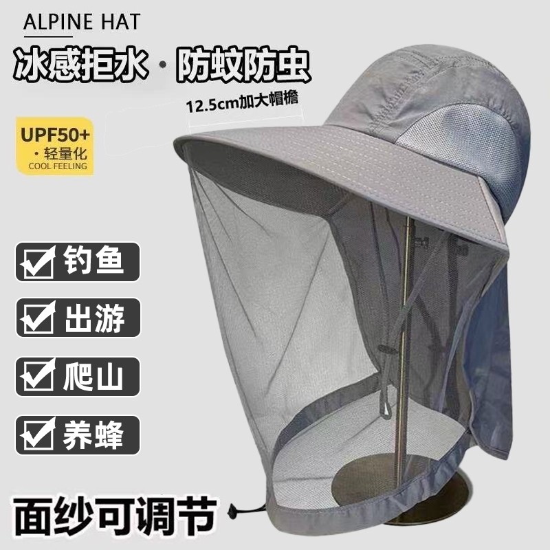 防晒帽男女登山帽防蚊虫防紫外线面罩钓鱼网纱渔夫帽太阳帽遮阳