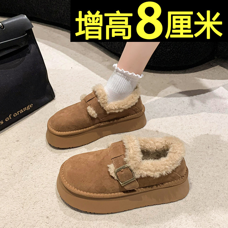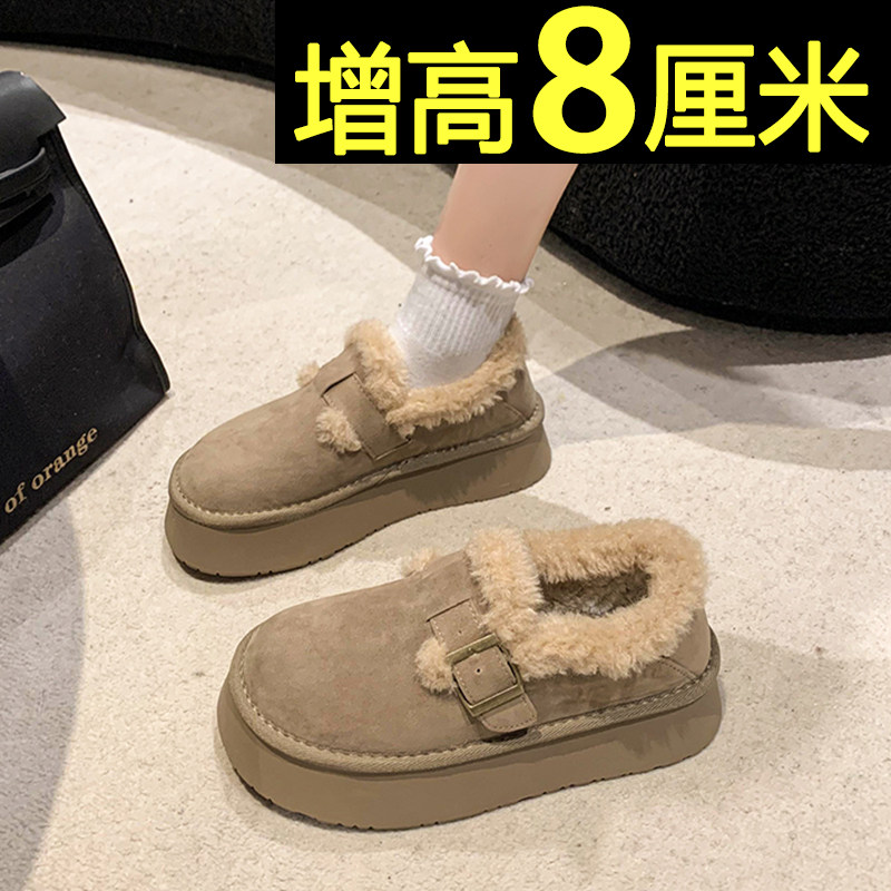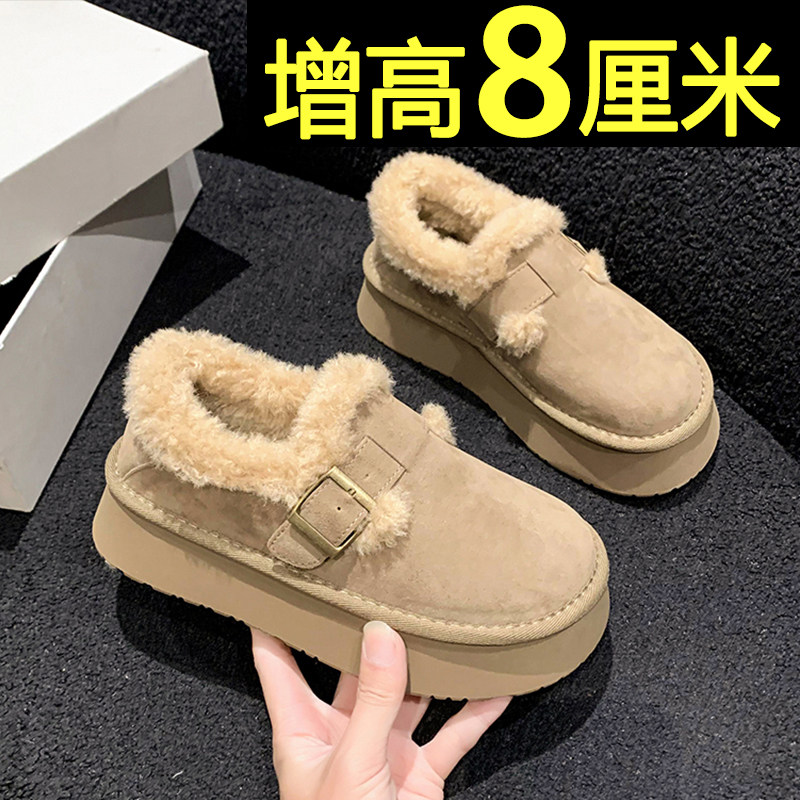 低帮厚底雪地靴女2025新款冬季懒人一脚蹬毛毛棉鞋加绒加厚女鞋子