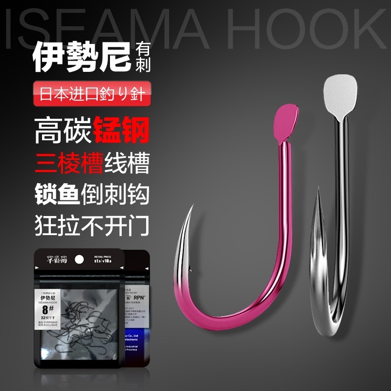 日本进口伊势尼鱼钩正品短柄加粗有倒刺散装钓鱼钩鲤鱼大号钩清仓