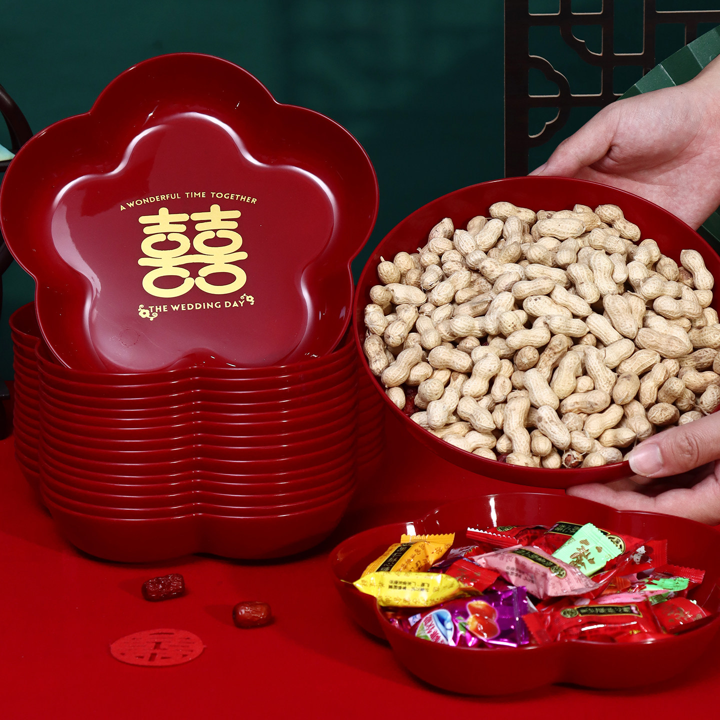 结婚果盘红色喜糖盘子订婚摆件客厅专用婚庆用品大全婚礼用的新婚