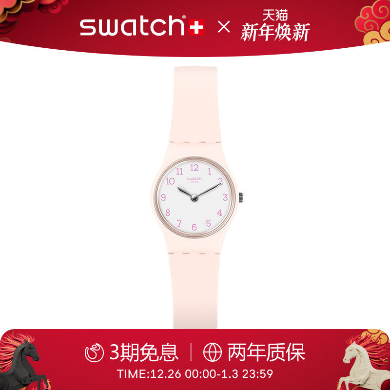 Swatch斯沃琪瑞士手表粉色初高中女学生小表盘石英手表新年礼物