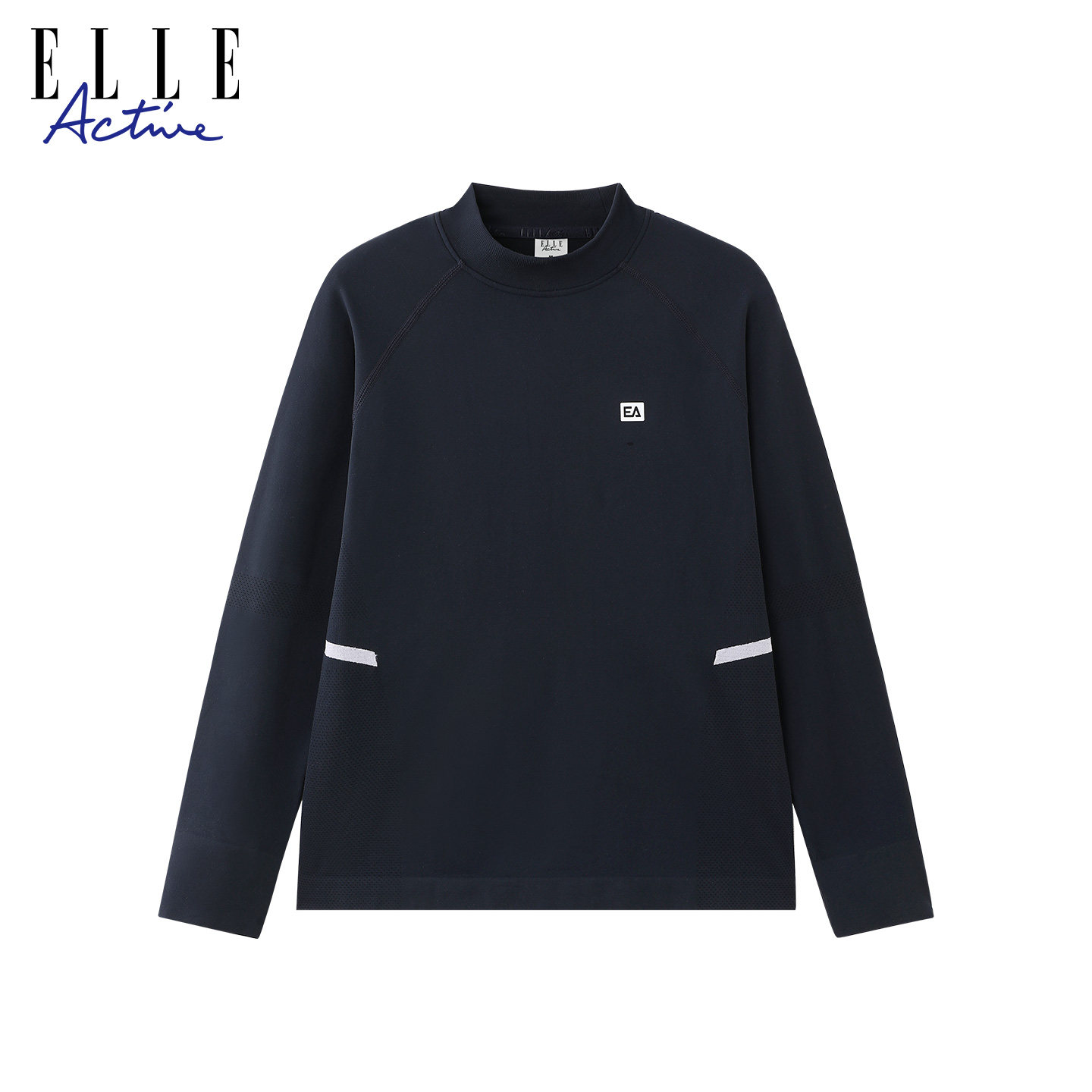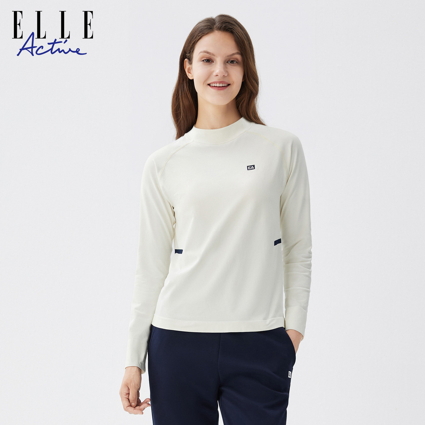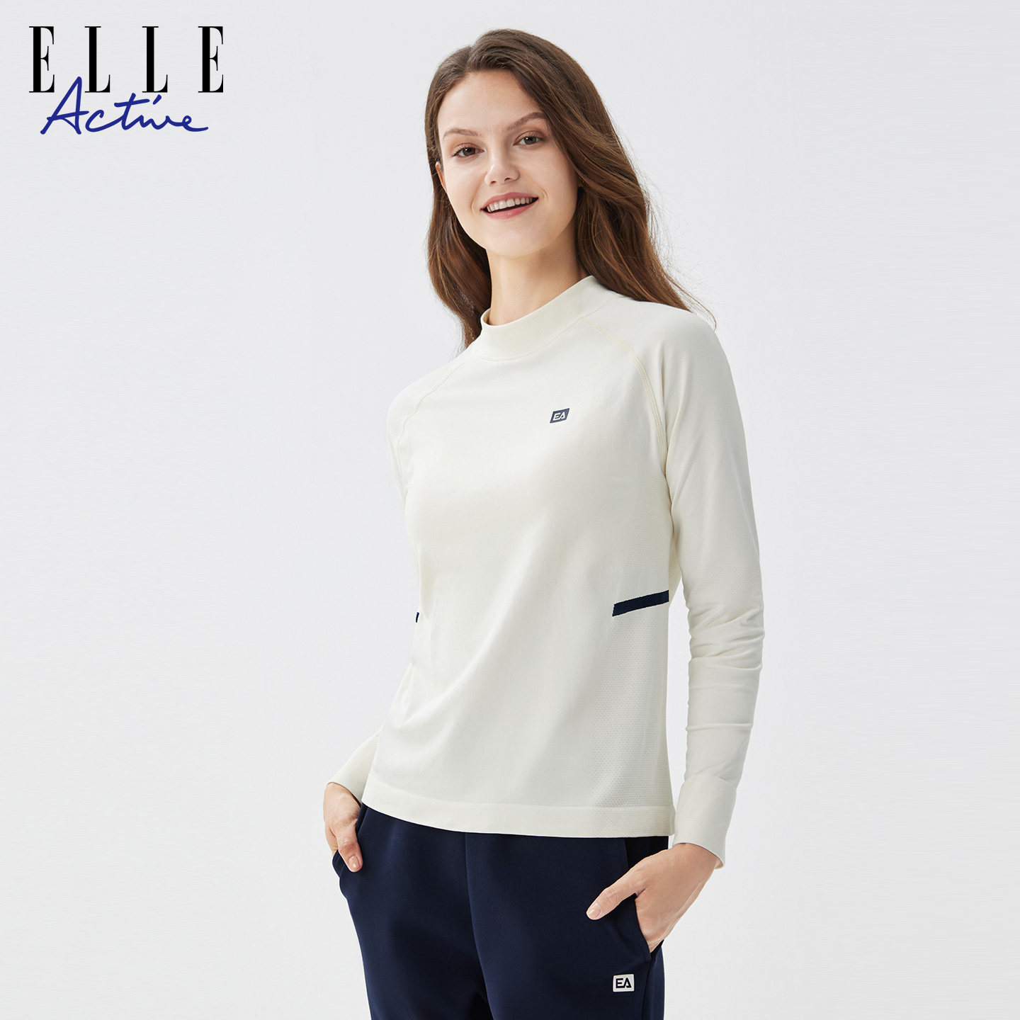 ELLE Active一体织无缝运动长袖T恤女米白色上衣秋新款内搭套头衫