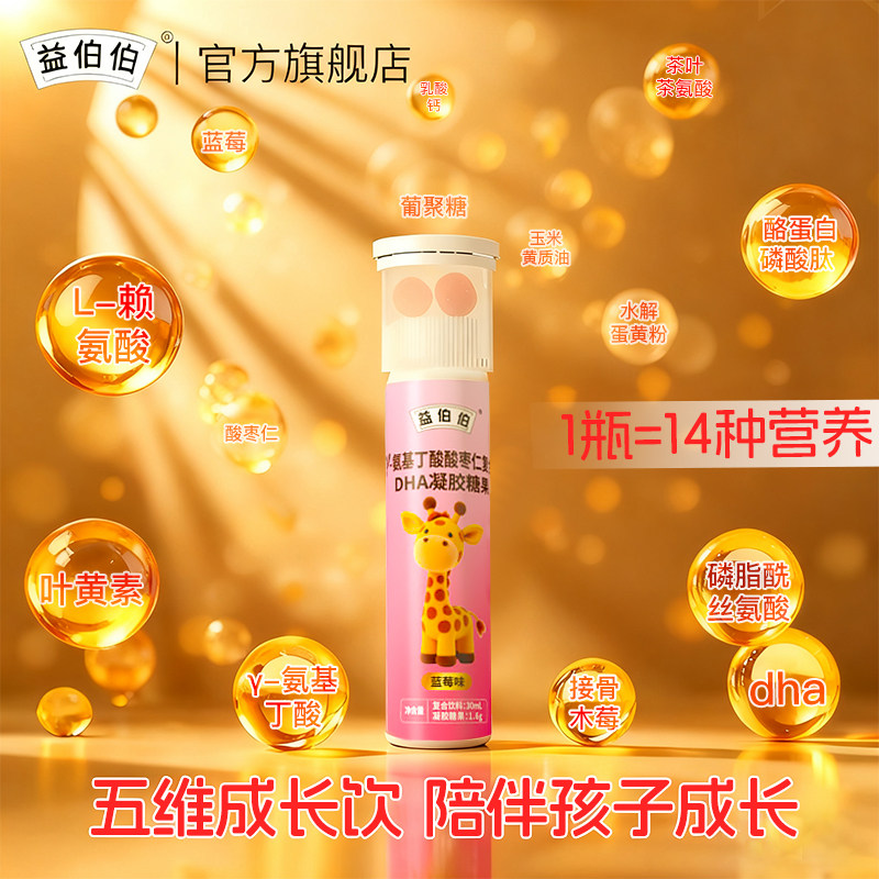 益伯伯氨基丁酸赖氨酸DHA藻油儿增童强青少年蓝眼莓脑忆护叶黄素
