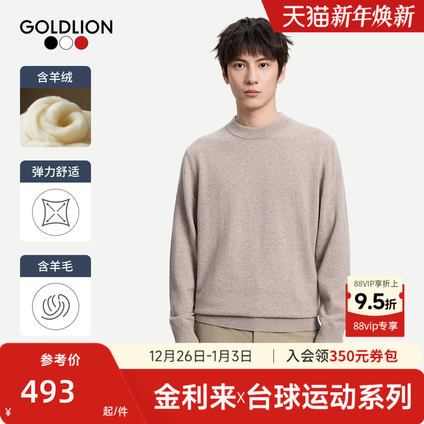 【台球运动系列】金利来新款男士圆领羊毛衫保暖纯色休闲针织上衣