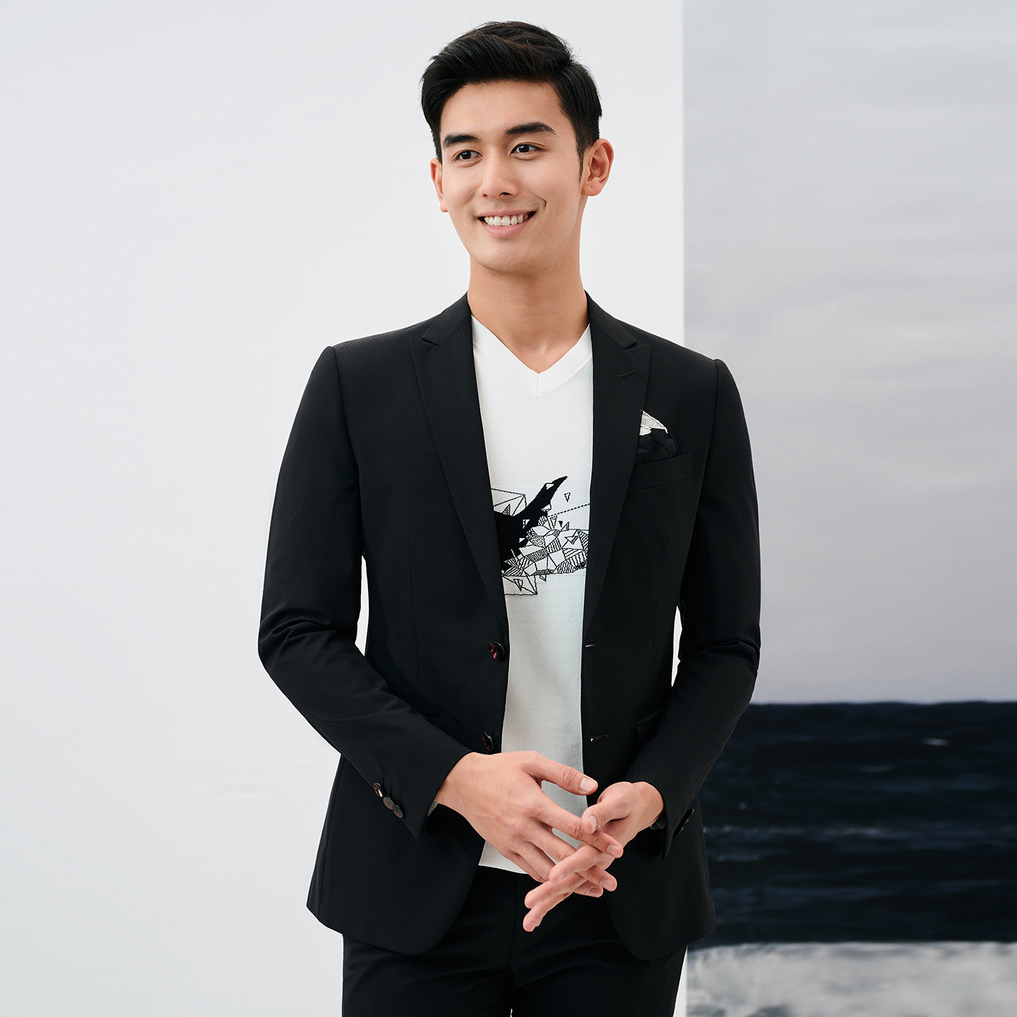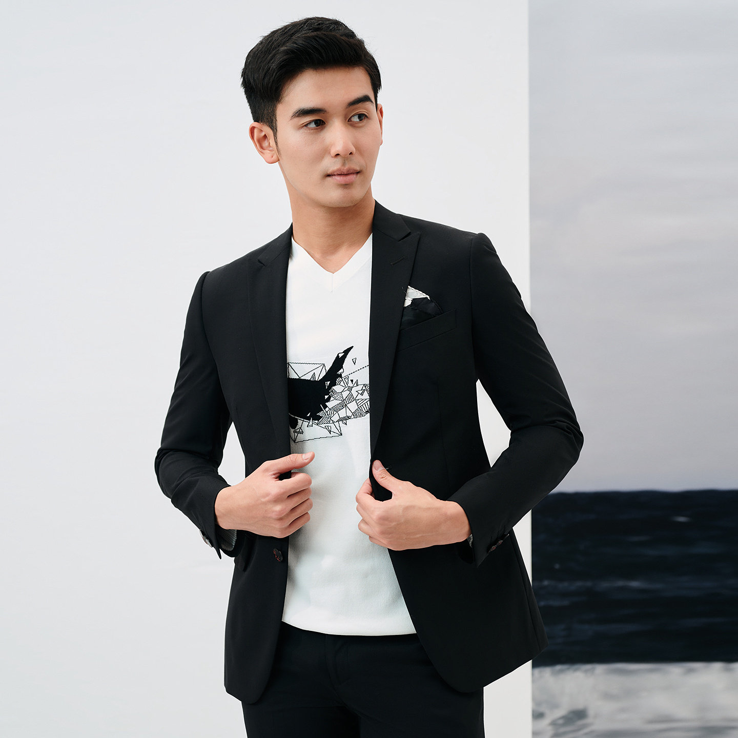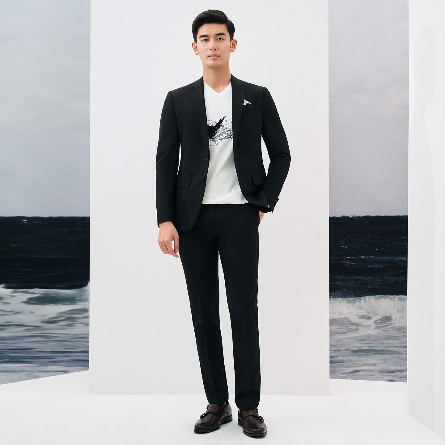 乔顿2025秋冬男绵羊毛西服套装上衣百搭黑色商务正装修身小西装
