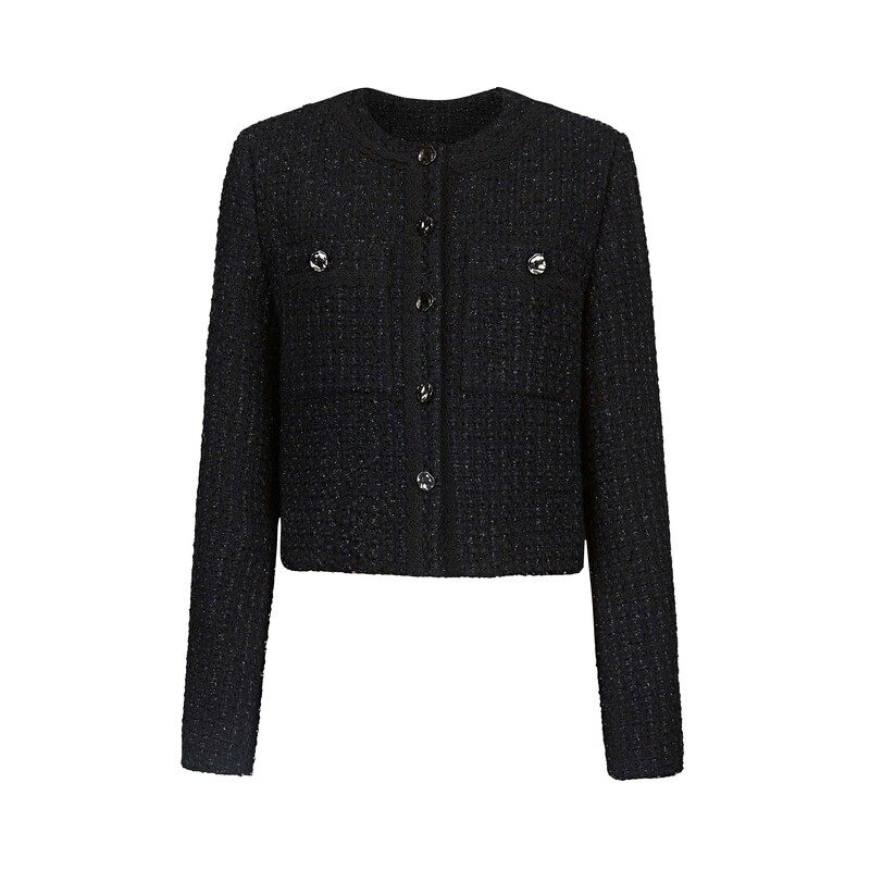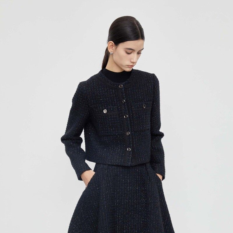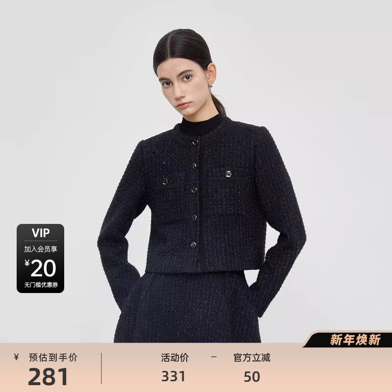 sdeer圣迪奥女装小香风套装圆领格纹短款西装外套S23482203