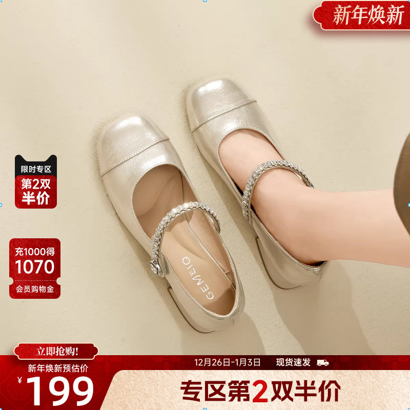 戈美其粗跟玛丽珍鞋女2025夏秋季高级气质小香风配裙子的单鞋子