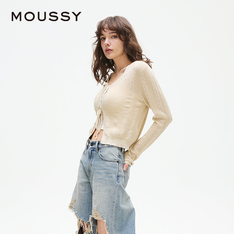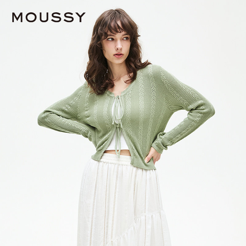 MOUSSY 2025春季新品优雅淑女风花边领系带针织开衫028ISZ70-0671