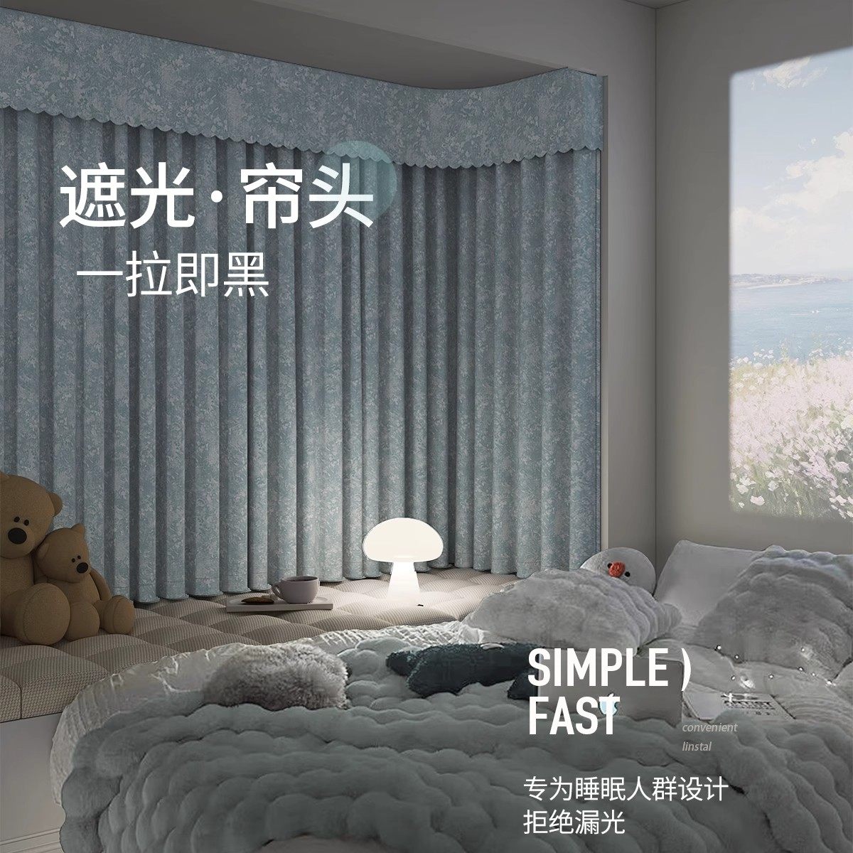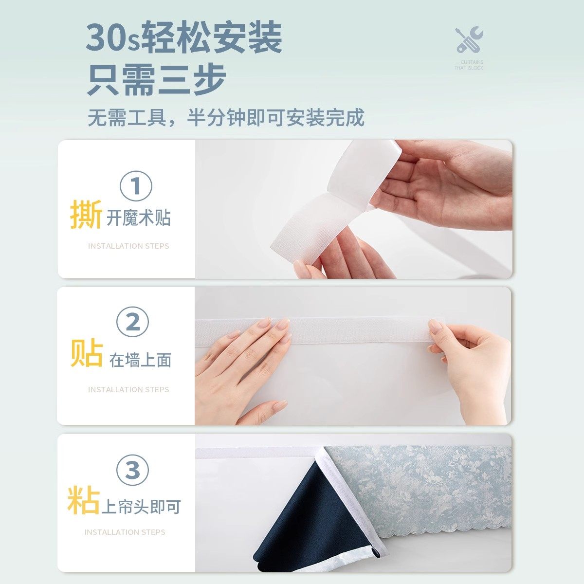 顶部全遮光窗帘帘头卧室窗幔自粘魔术贴防漏光神器窗帘缝隙遮光条