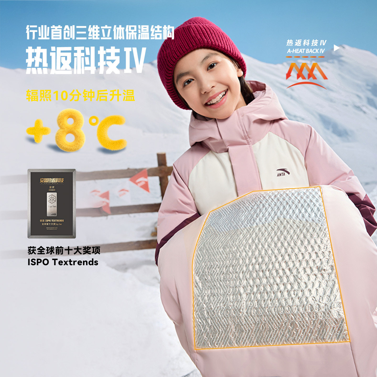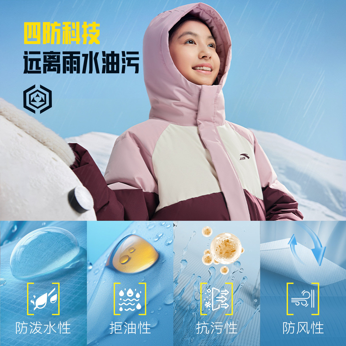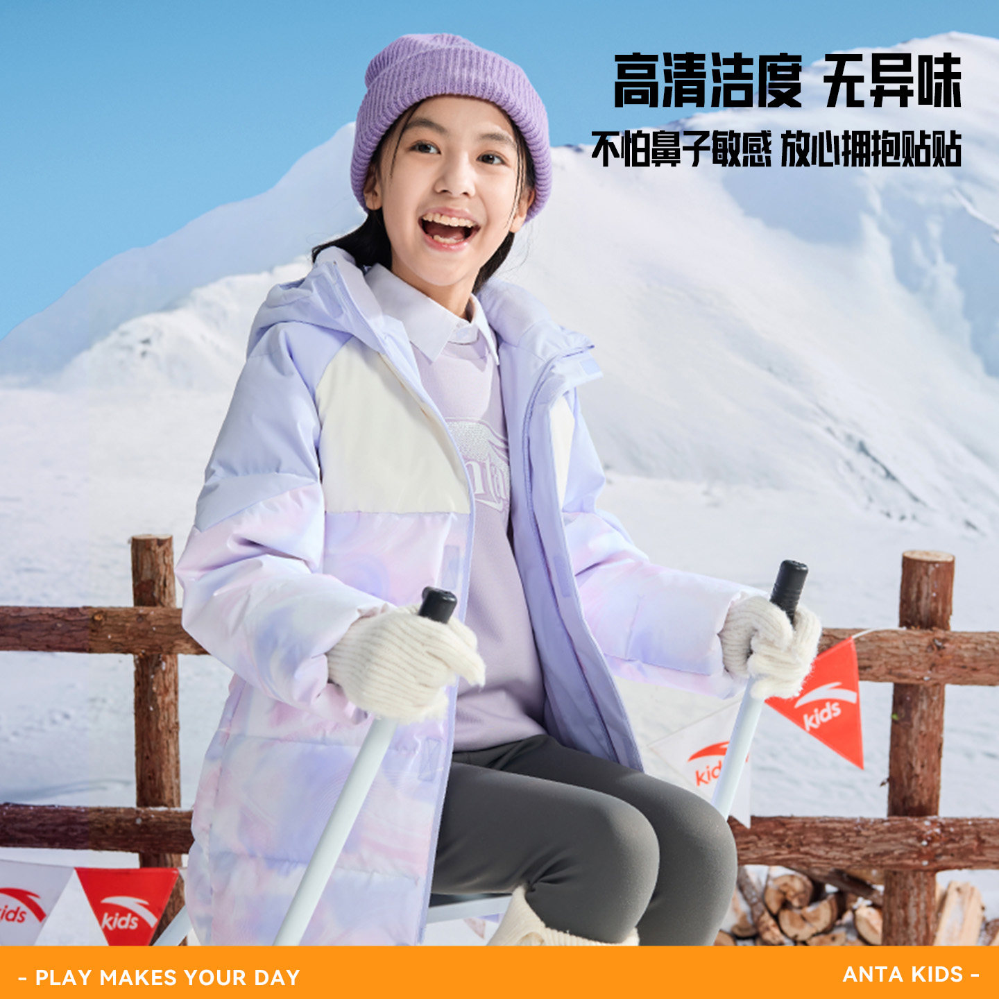 安踏儿童女童中长羽绒服2025冬上新舒适保暖中大童四防热返羽绒服