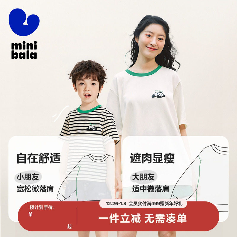 [亲子装]迷你巴拉巴拉男童女童纯棉短袖t恤一家三口母子装亲子服