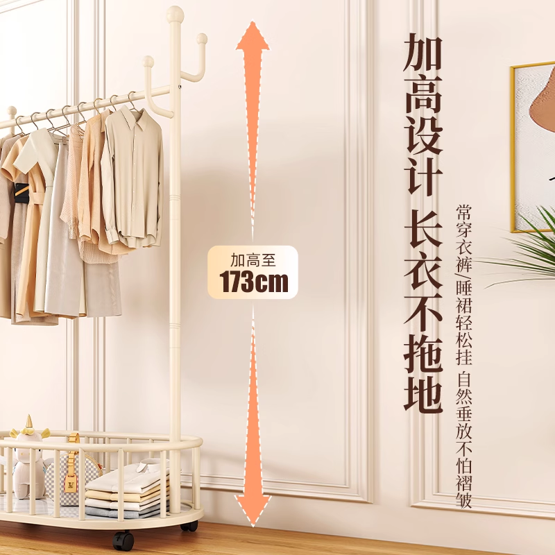 衣架落地卧室隔夜衣服收纳衣帽架轻奢移动家用衣架置物架晾挂衣架