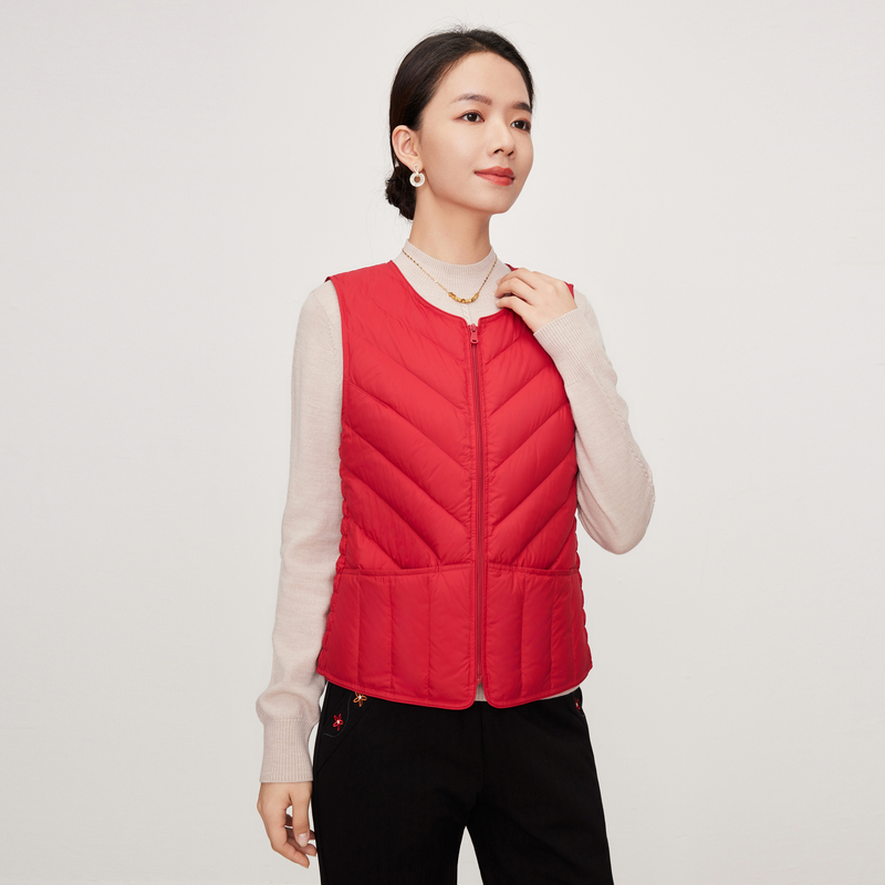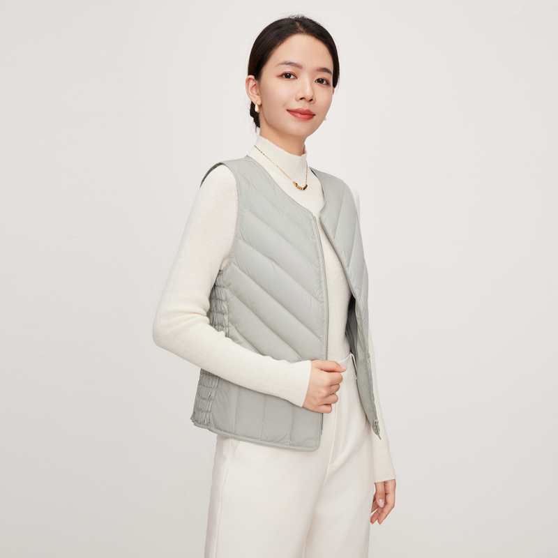 鸭鸭轻薄羽绒服马甲女V领反季基础修身背心休闲蓬松鸭绒马夹外套X