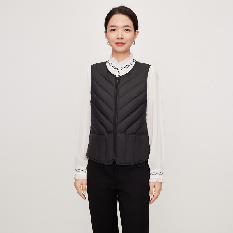 波司登秋季男女居家羽绒背心轻暖V领羽绒内胆休闲舒适显瘦马甲