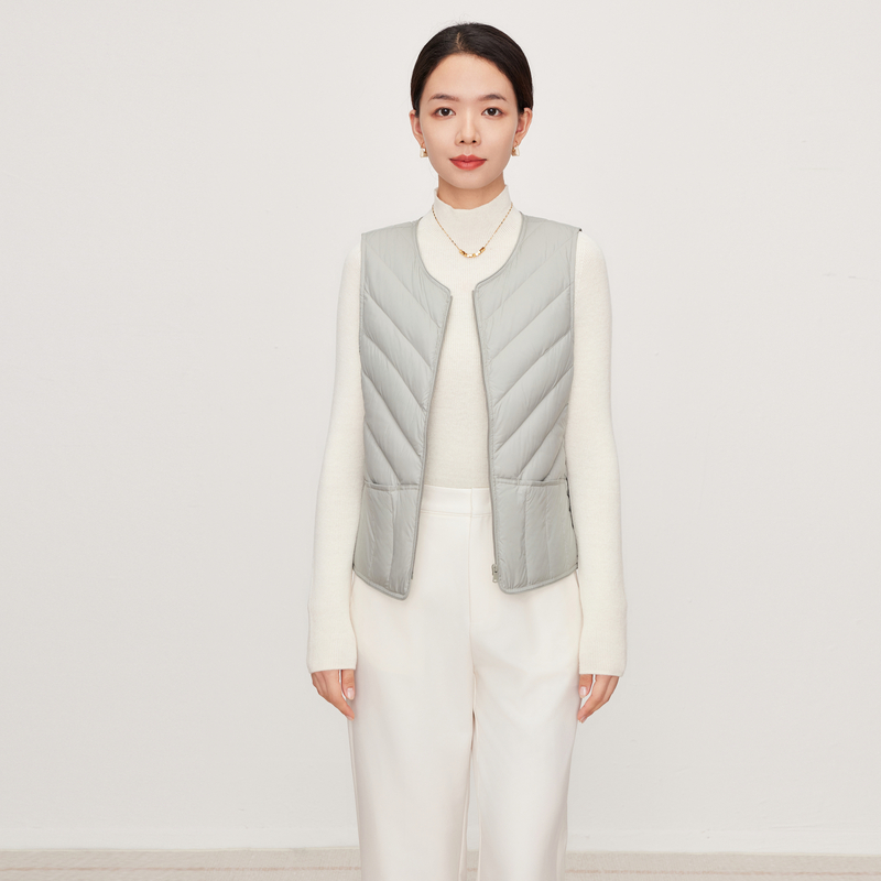 2025秋冬新款无领轻薄圆领羽绒马甲女内穿薄款内胆羽绒服背心坎肩