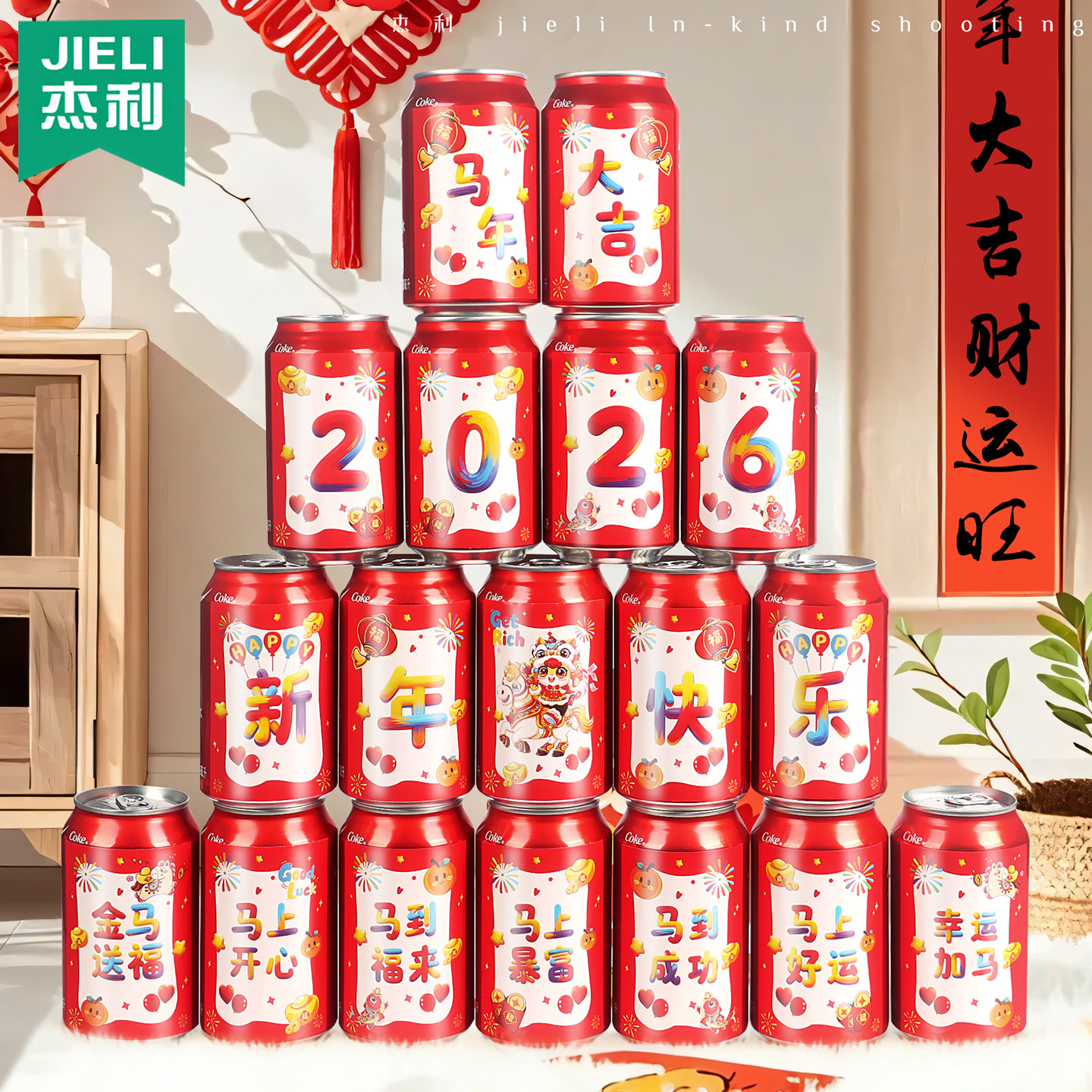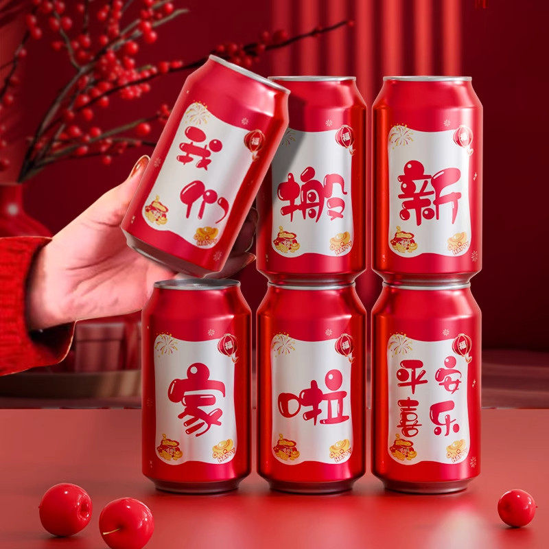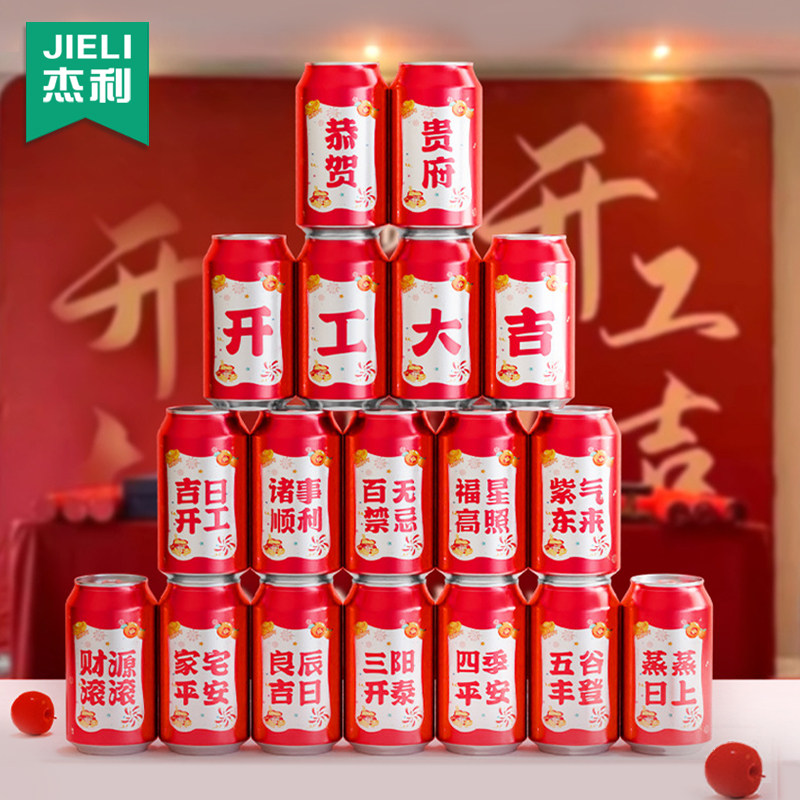 2026新年公司开工大吉可乐贴纸开业仪式气氛场景布置新房装修装饰用品宴会易拉罐旺仔牛奶饮料氛围道具定制